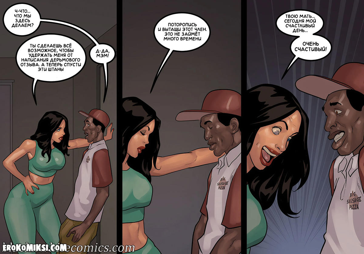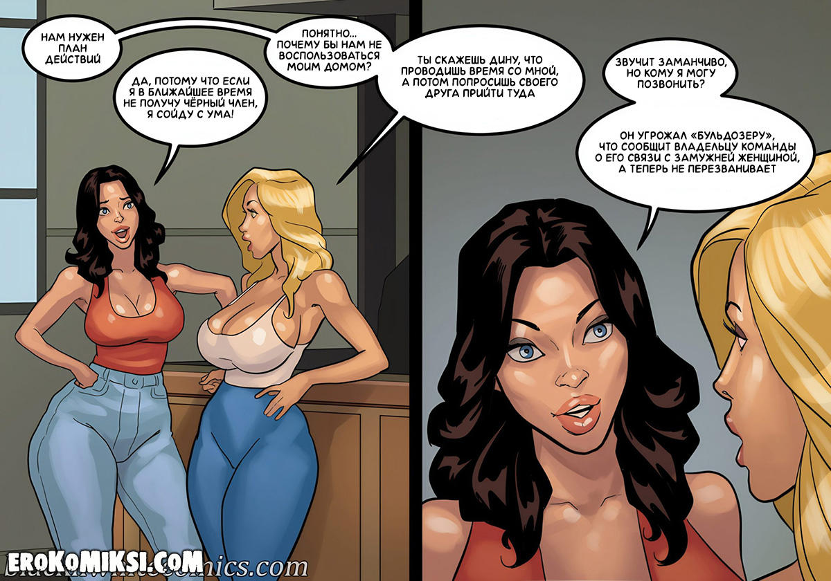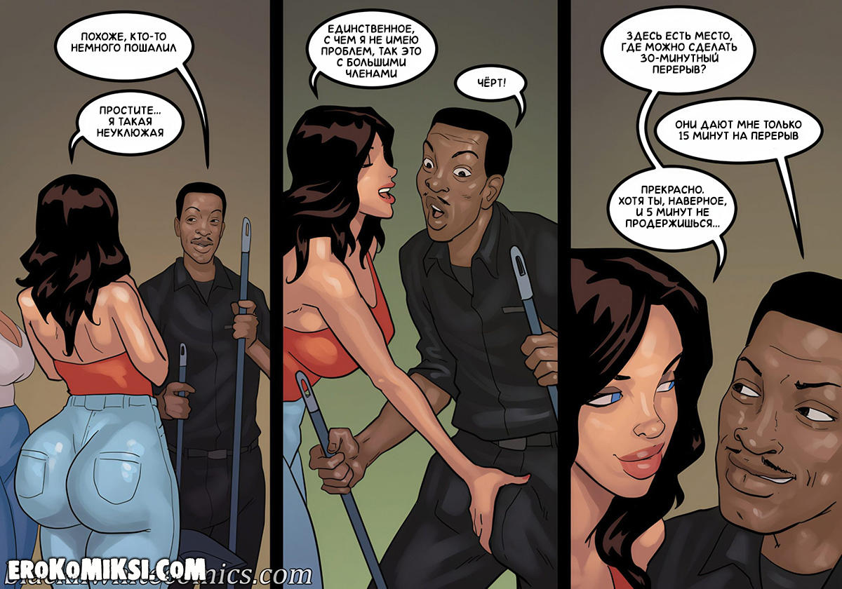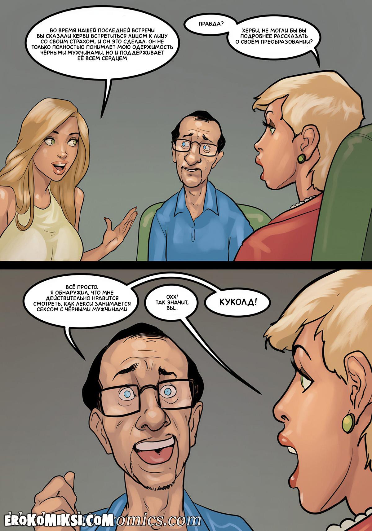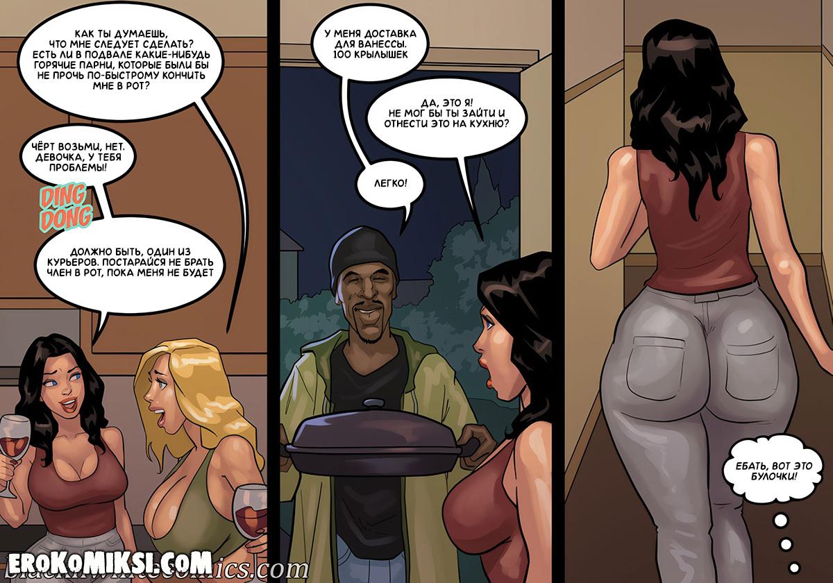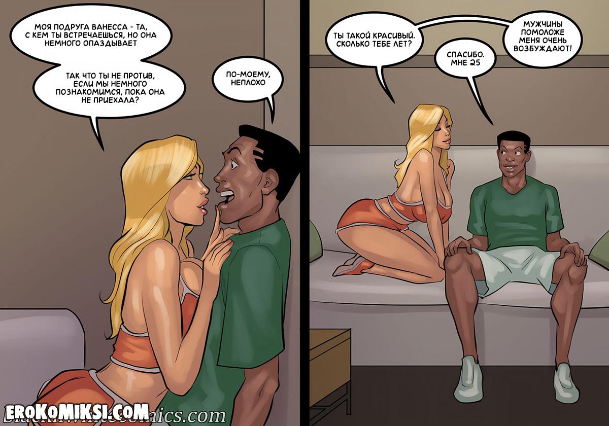 Секс комикс Игра в покер. Часть 4. Сексуальная блондинка настолько обнаглела, что на глазах у своего мужа рогоносца, затащила в дом чернокожего почтальона, чтобы тот как следует выебал её тугие дырочки, а муженёк наблюдал за всем происходящим…