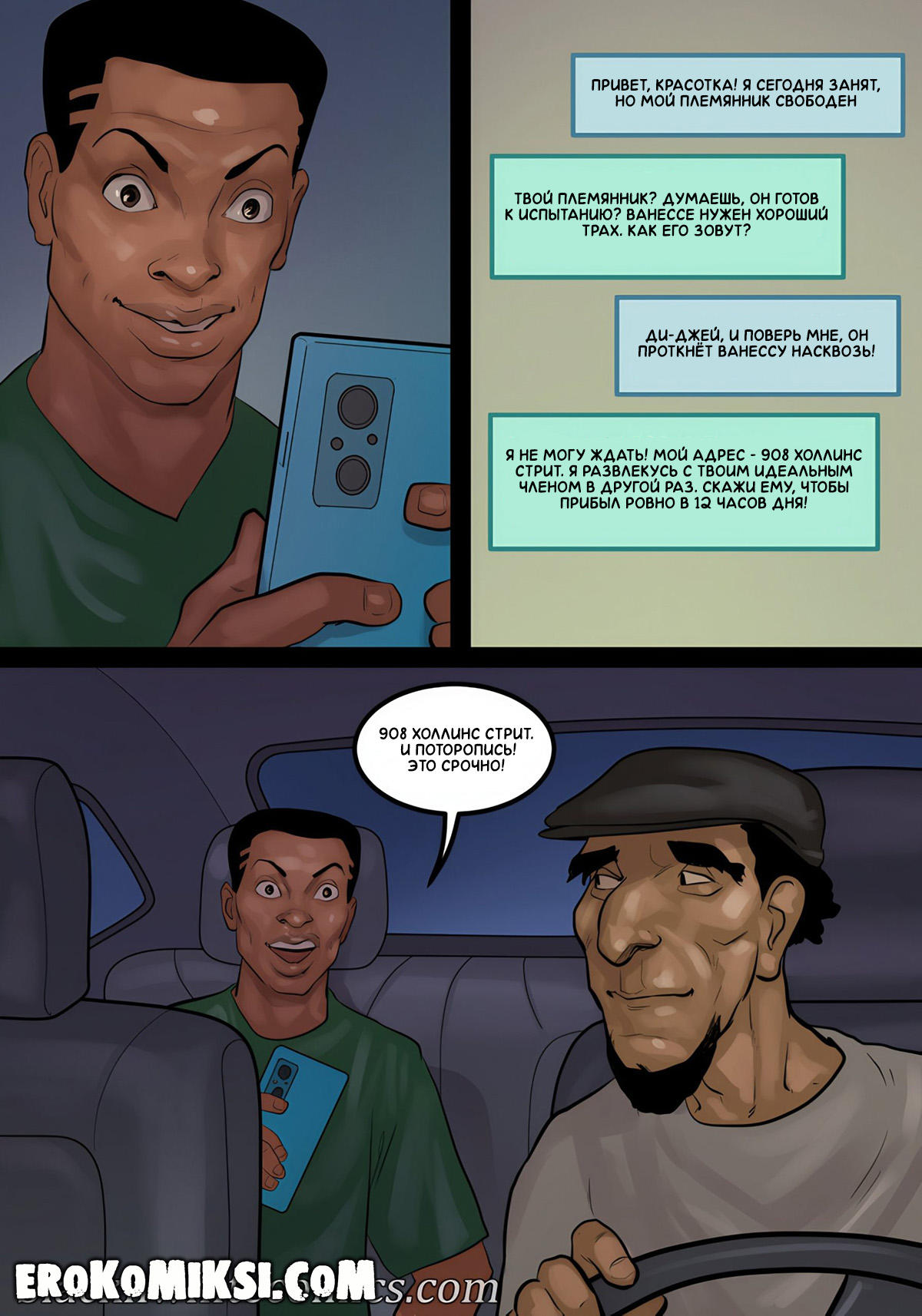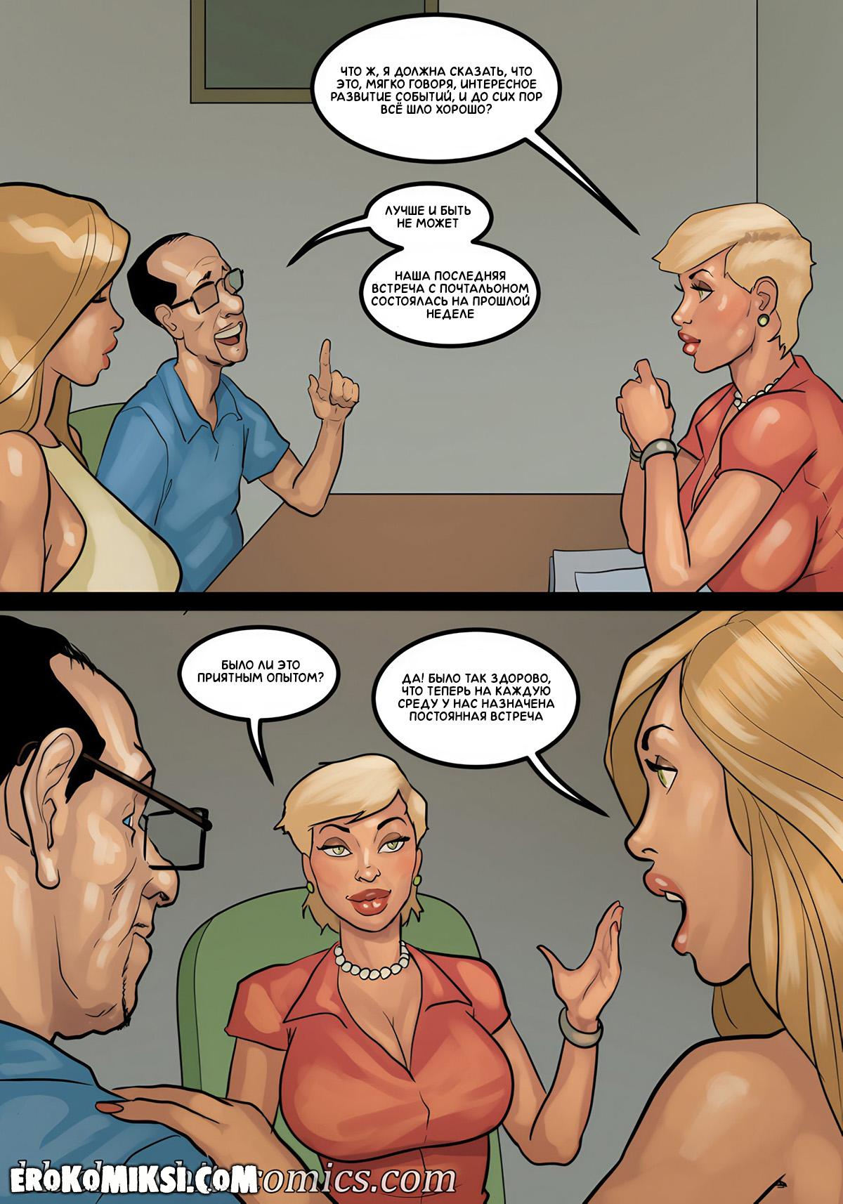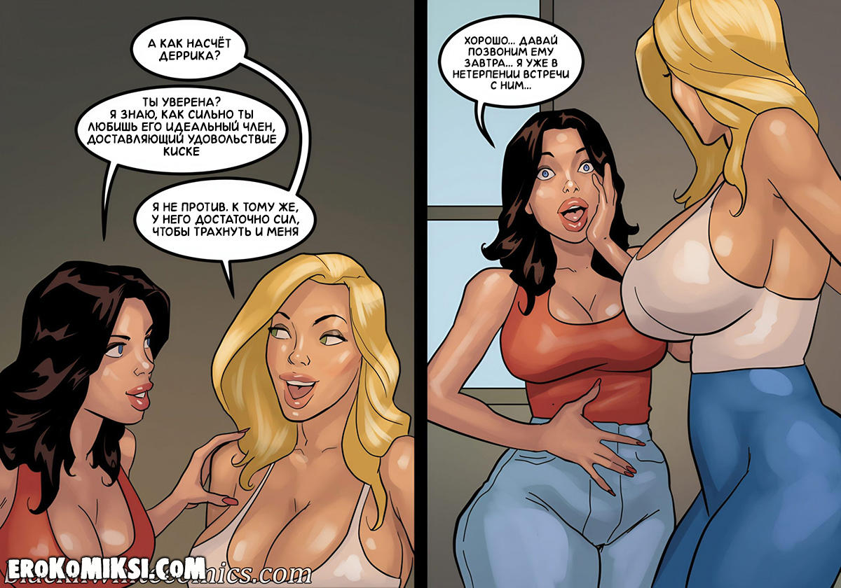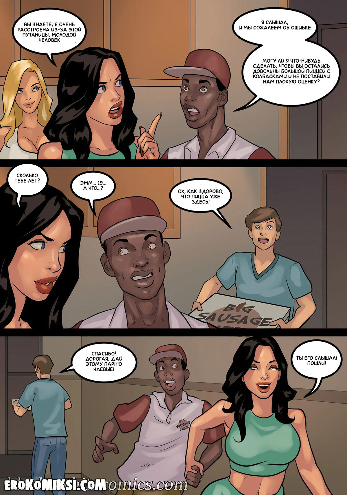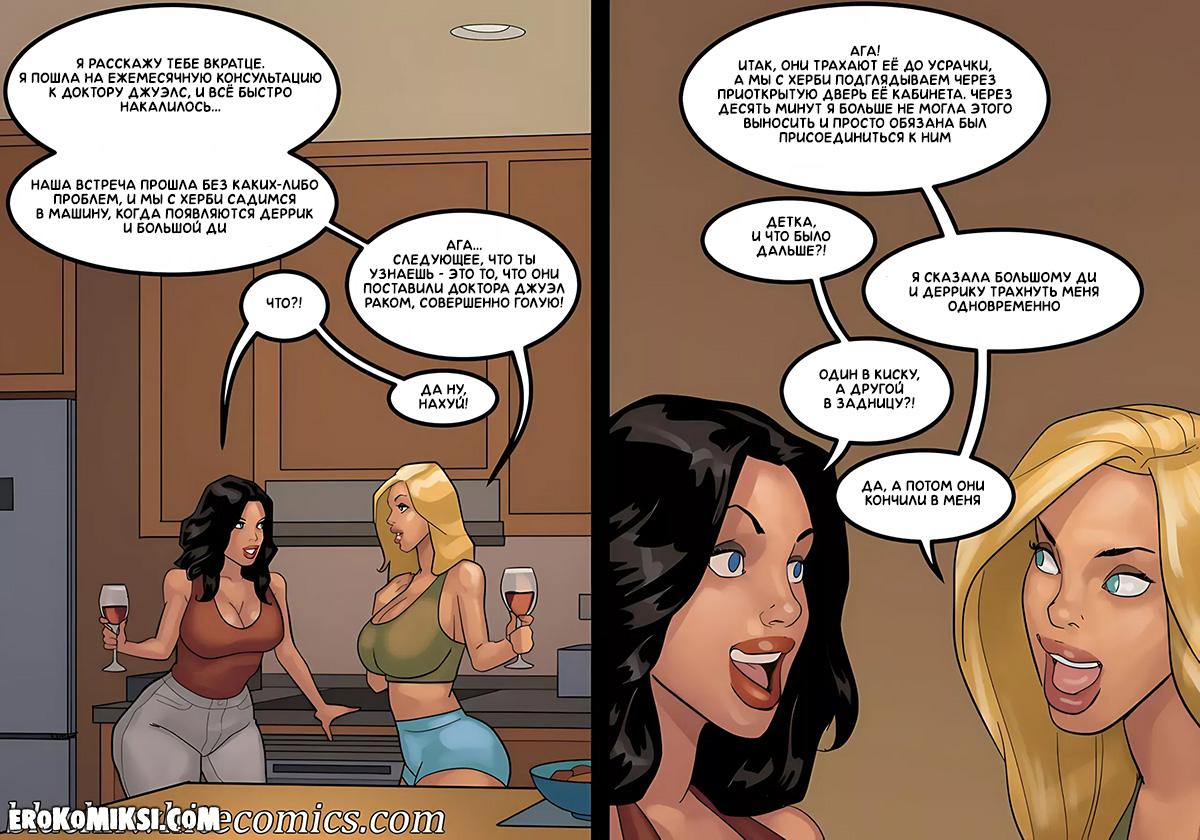 Секс комикс Игра в покер. Часть 4. Сексуальная блондинка настолько обнаглела, что на глазах у своего мужа рогоносца, затащила в дом чернокожего почтальона, чтобы тот как следует выебал её тугие дырочки, а муженёк наблюдал за всем происходящим…