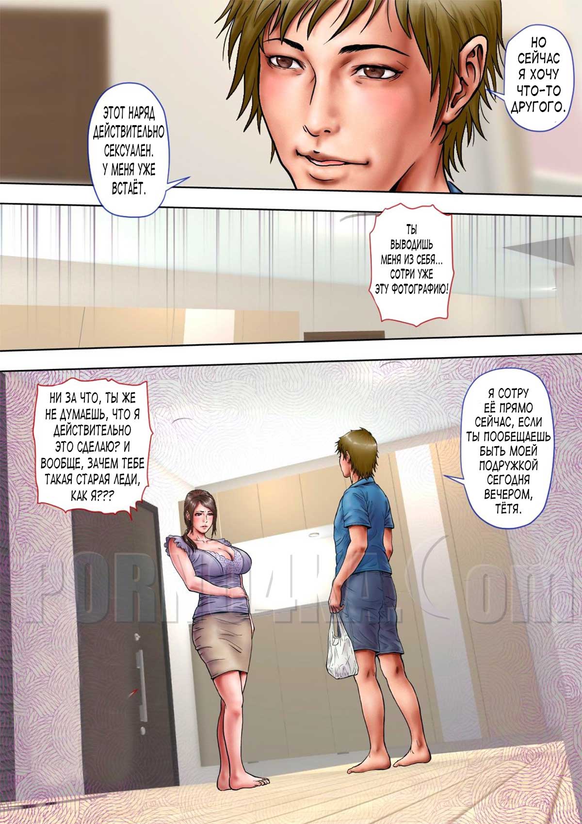 Секс комикс Измена с моей сексуальной тетей. Часть 1. В этом порно комиксе речь пойдет про одного парня, который озабочен сексуальным желанием по отношению к своей аппетитной зрелой тети. Милфа стройна, обладает внушительной грудью и крайне сексуальна. В общем сочная зрелка…