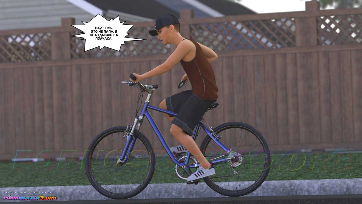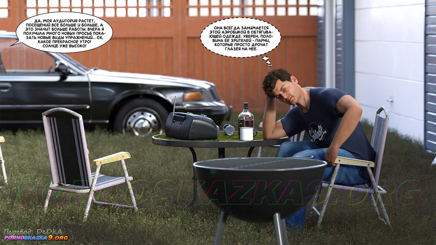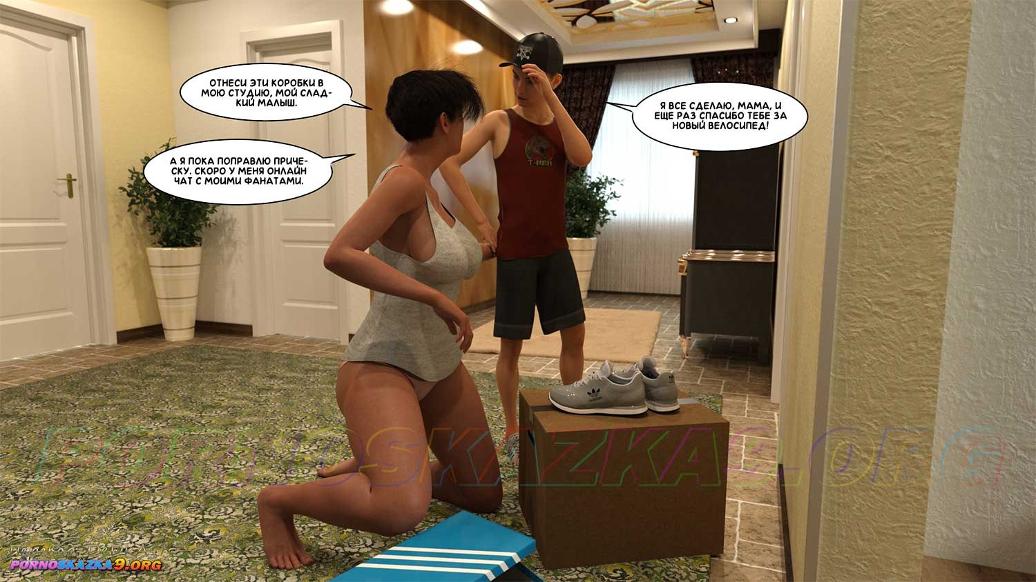 Секс комикс Как стать звездой порно. Часть 1. Зрелая мать Бена уже давно проводит в сети занятия по аэробике для женской половины, и надо сказать, прилично зарабатывает за счет того, что число подписчиков на ее канале неуклонно идет вверх. Но милфа ведет занятия в очень откровенной одежде, и ее муж уверен, что как минимум половина ее подписчиков, это уж точно не женщины, а возбужденные мужчины, которых интересует точно не аэробика, а кое-что другое…
