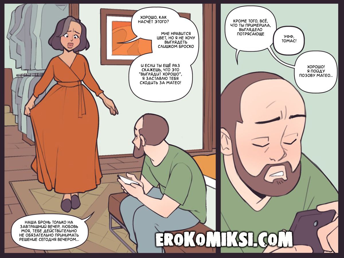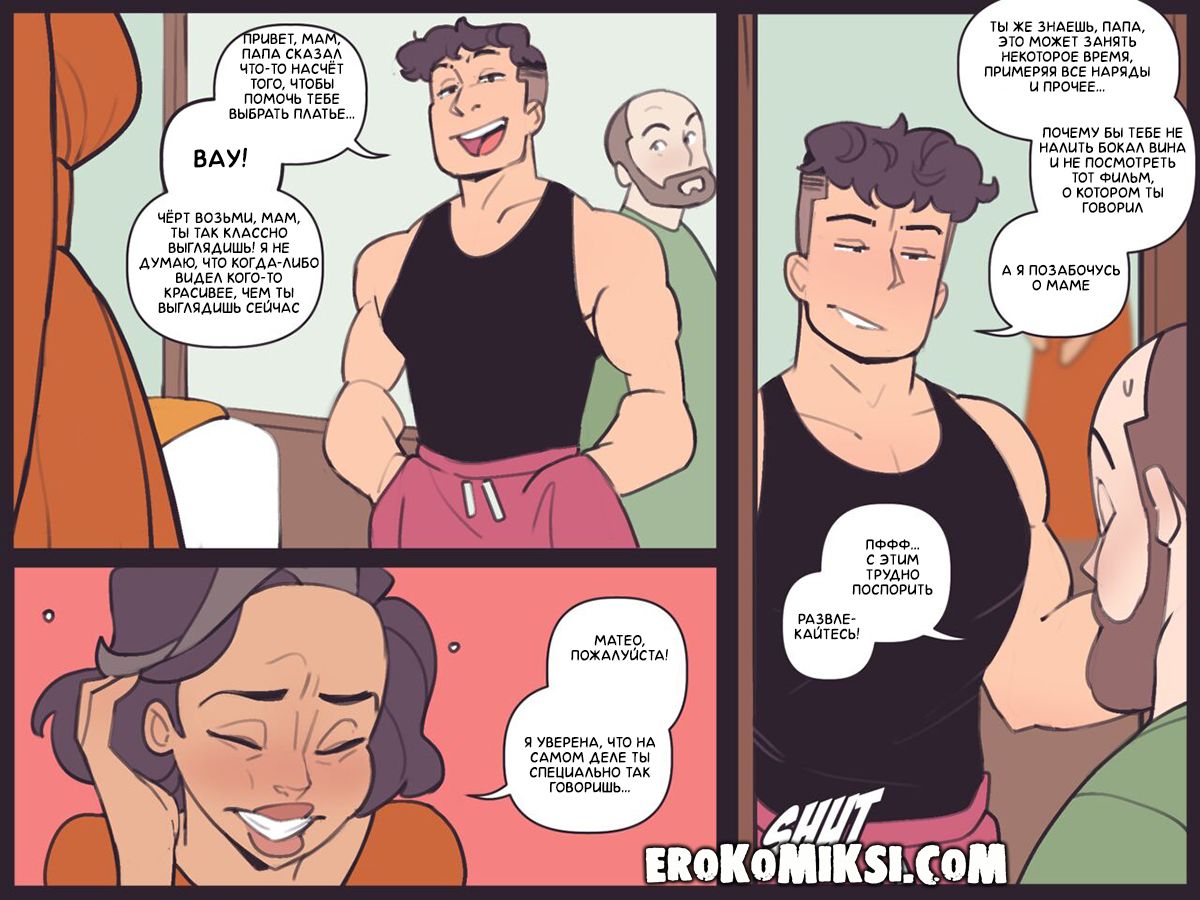 Секс комикс Каталина. День Святого Валентина. Каталина и Томас планируют отпраздновать День Святого Валентина в ресторане. Каталине нужна помощь с выбором платья, но Томас занят и зовёт их сына Матео, чтобы тот помог маме. Но вместо помощи, сынок дико возбудился, увидев свою сексуальную маму и решил её трахнуть. Каталину такой расклад устроил и она с удовольствие раздвинула ножки перед сыночком…