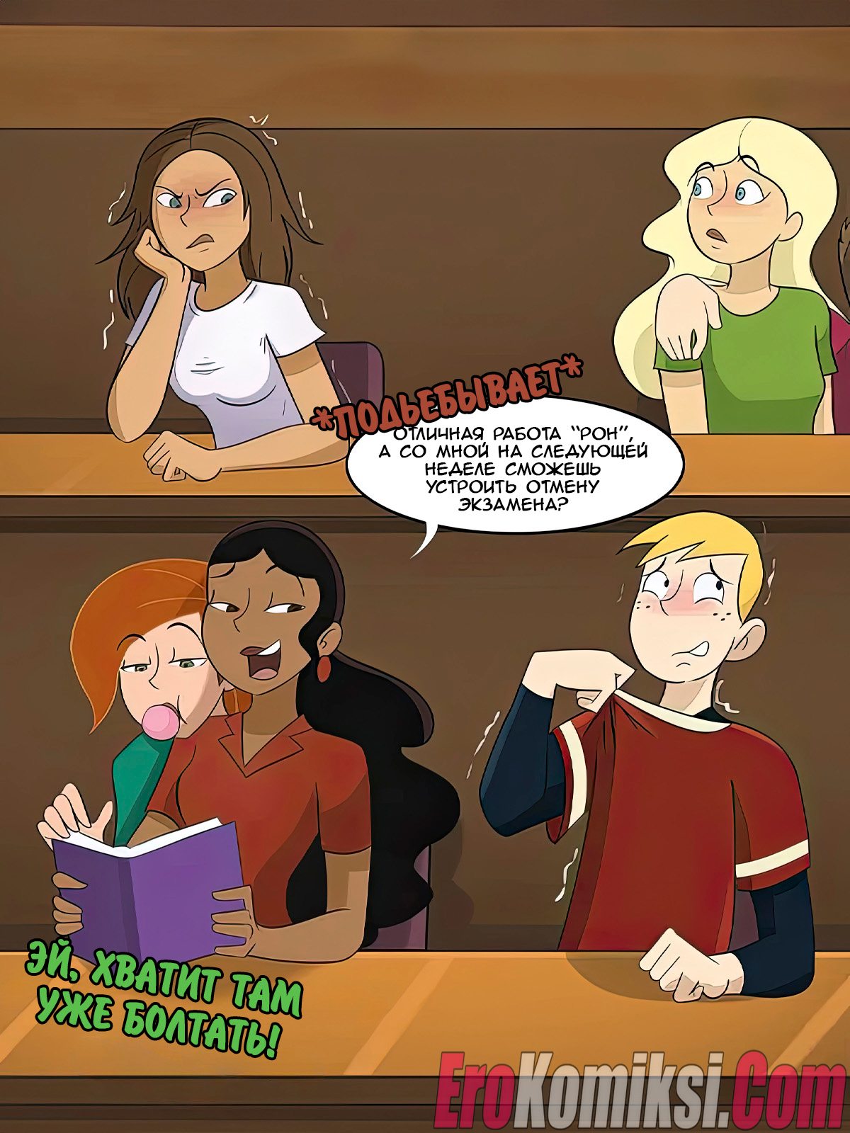 Секс комикс Ким 5+. Шиго опаздывает на урок. Shego is Late to Class. Hermit Moth. Рону и его одноклассникам предстоит тест на уроке у Шиго. Парень с утра встретился с красоткой училкой и хорошенько ее выебал, из-за чего она не успела провести тест…
