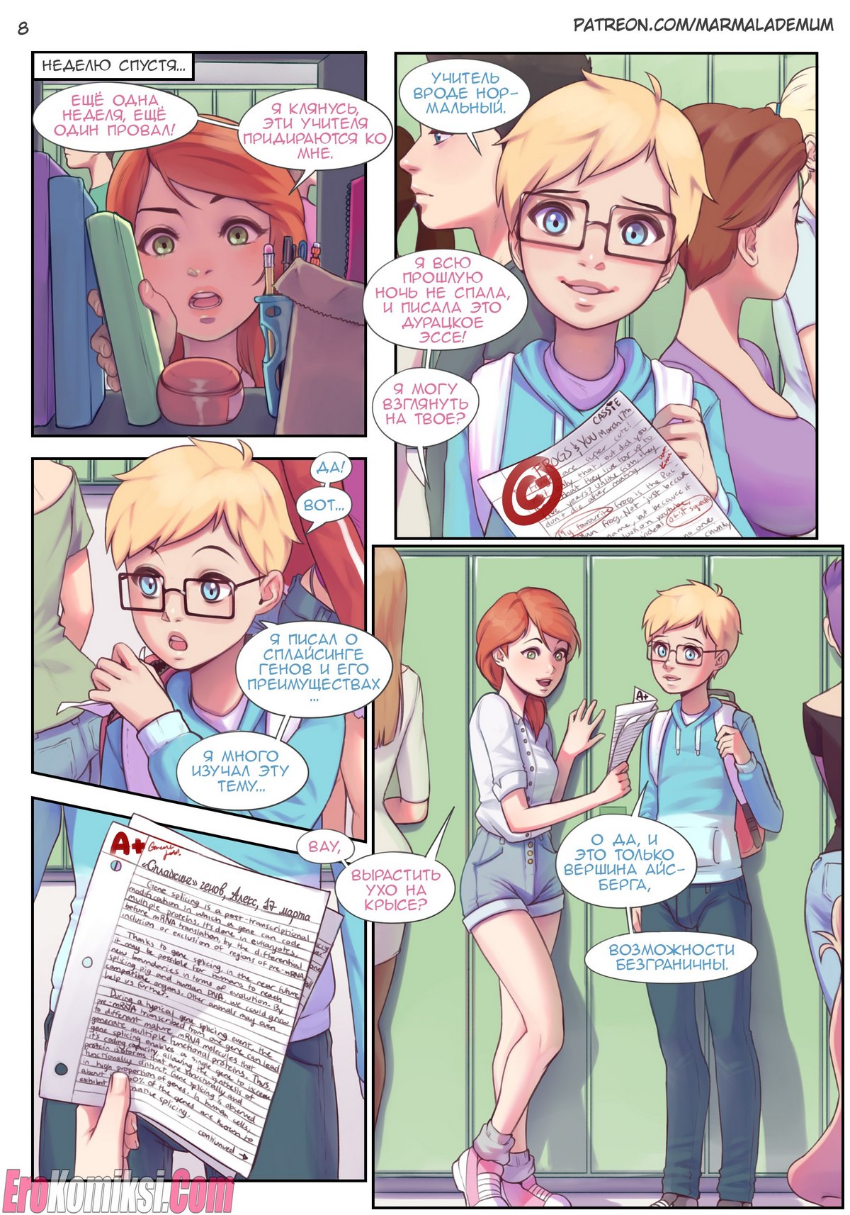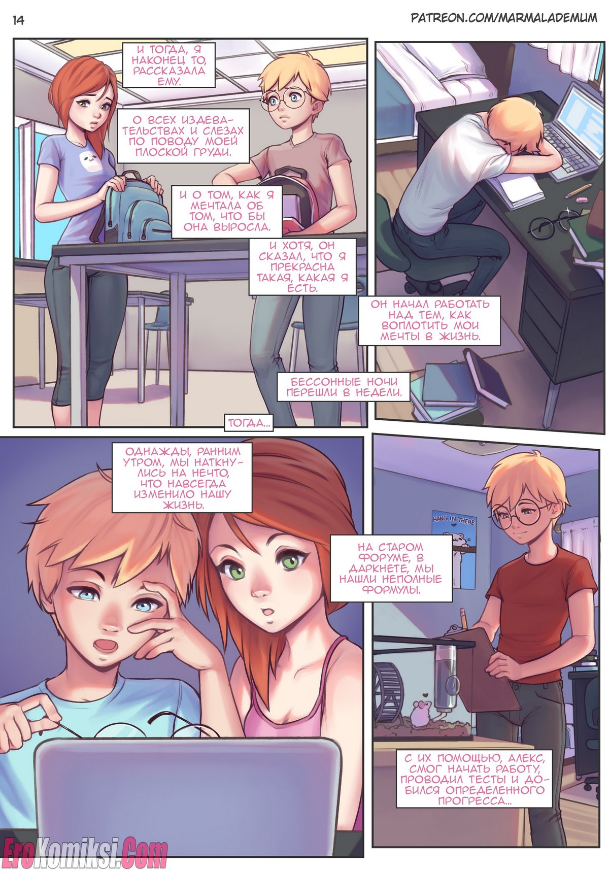 Секс комикс Класс Химии. Закадычные друзья всегда поддерживали между собой теплые отношения, но в один из дней, парень узнал, что его подругу совершенно не устраивает ее мелкий размер груди. Девушка мечтает о большем, но понимает, что это не возможно. В один из дней герои наткнулись в сети на формулу, которая способна увеличить грудь, однако сделать её им придётся самостоятельно в классе химии. После успешного синтеза, герои вкололи вещество девушки, и эффект не заставил себя долго ждать. На следующий день, героиня начала замечать изменения своего организма…
