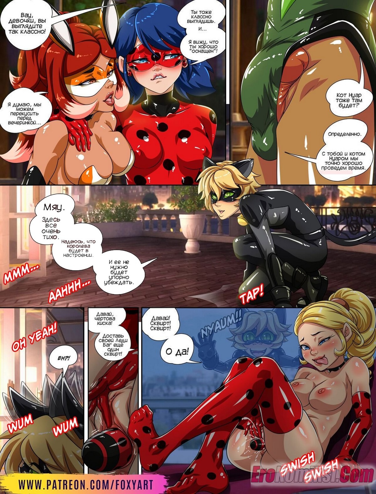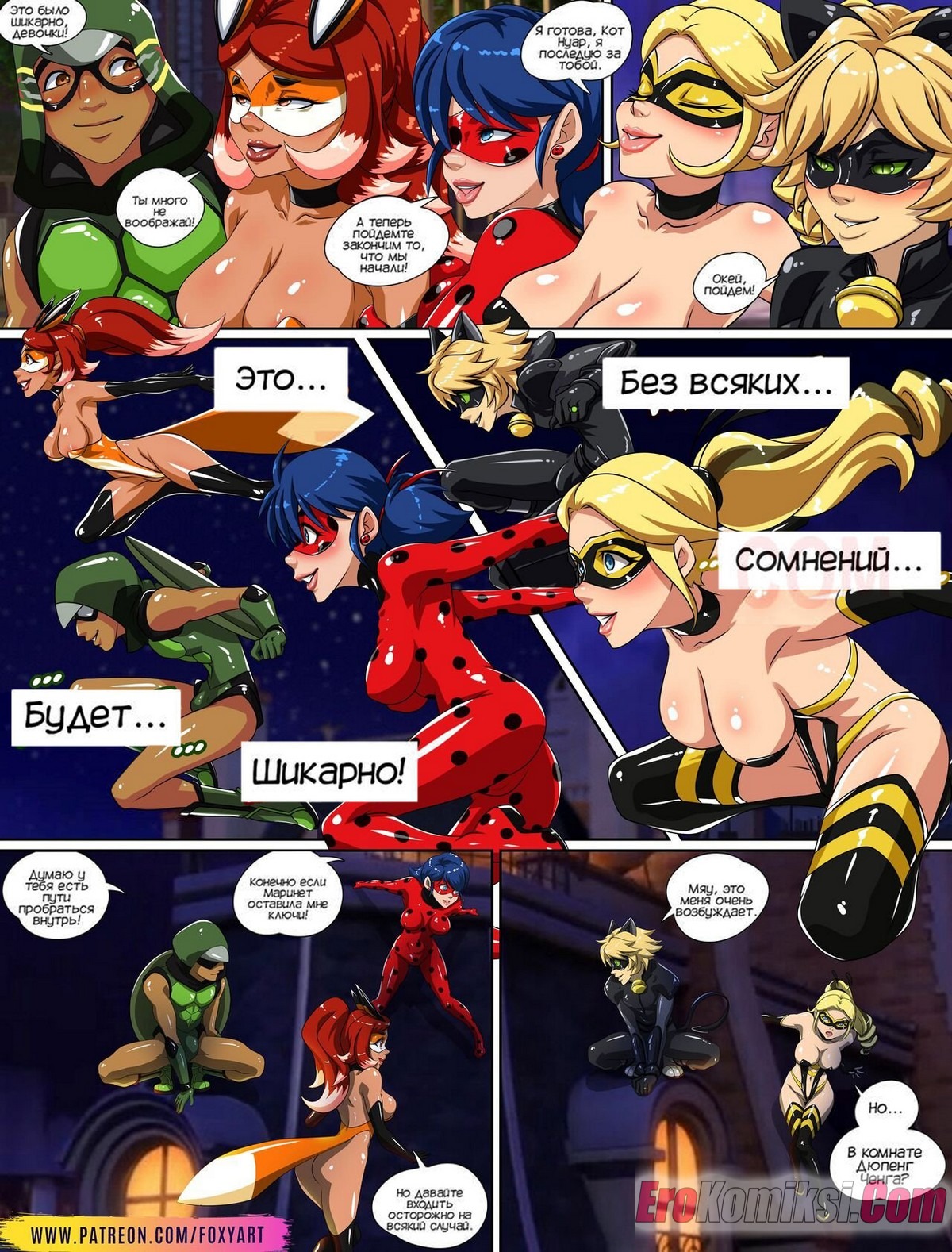 Секс комикс Леди Баг. Время дружеской встречи. Friendly Meeting Time. FoxyArt Горячая сисястая брюнетка Леди Баг решила повеселиться со своими друзьями. Они собрались все в одной квартире, чтобы заняться страстной групповой еблей и узнать предел своих сил.