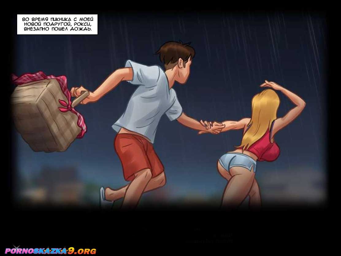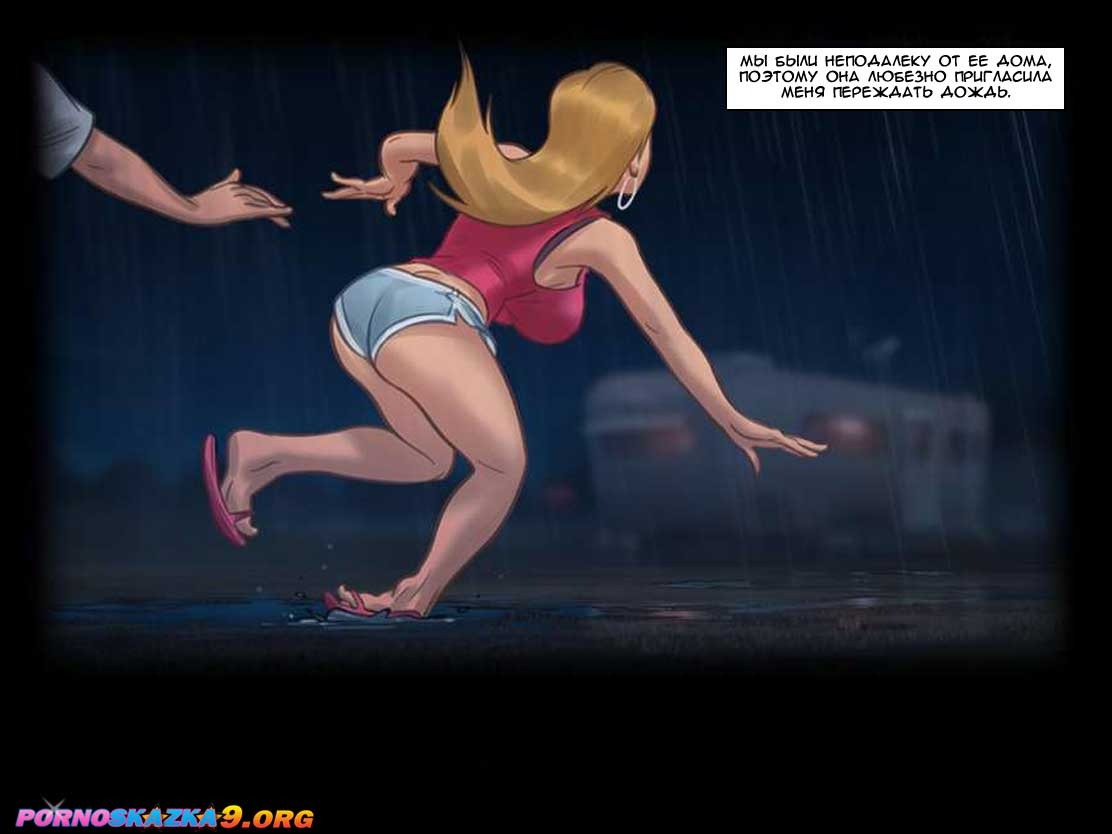 Секс комикс Летнее время. Дождь. Стив со своей подружкой по имени Рокси, попали под проливной дождь. Место, где жила красавица Рокси был поблизости, и она предложила Стиву дождаться окончания дождя у нее дома…