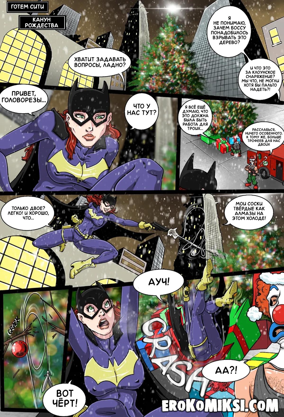 Секс комикс Лига Справедливости. Канут Рождества. Бэтгёрл патрулировала по Готему и наткнулась на ограбление, но пытаясь задержать преступников, что-то пошло не так. Грабители схватили девчонку и оттрахали её тугие дырочки, залив её до краёв горячей спермой…