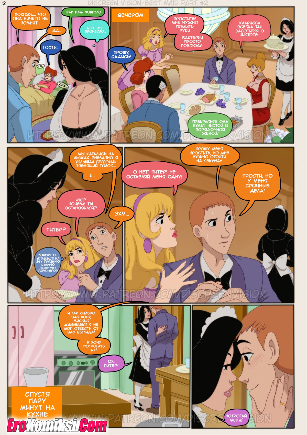 Секс комикс Лучшая горничная. Часть 2. Best maid. Discreen vision. Inusen Парень не мог отвести взгляда от сексуальной горничной милфы во время званого ужина. Они уединились на кухне и красотка стала сосать большой хуй парня, после чего он ее выебал и кончил в девушку.