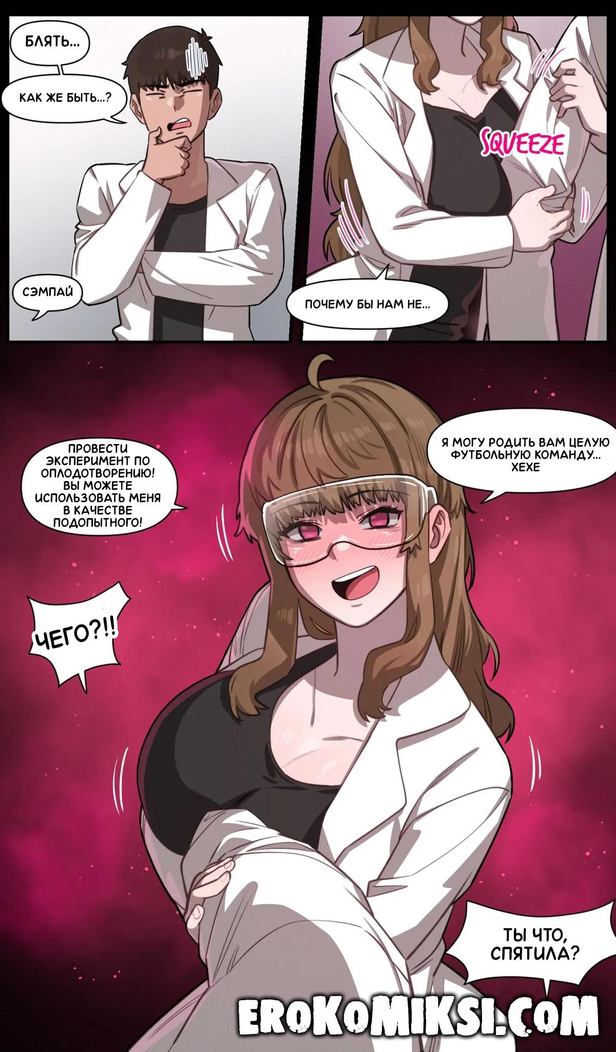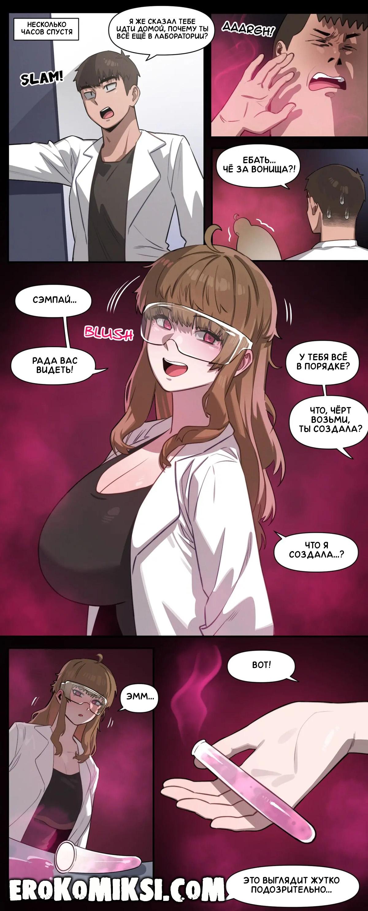 Секс комикс Лучший способ заворожить сэмпая. Молодая красотка лаборантка была влюблена в своего сэмпая и хотела от него детей, но парень совсем не обращал внимание на свою подчинённую и тогда, девушка нахимичила эликсир, чтобы заворожить возлюбленного. Как только сэмпай испробовал эликсир, он сразу же стал одержим сисястой красоткой. Он раздел её и хорошенько оттрахал, и до краёв заполнил её тугую киску спермой…