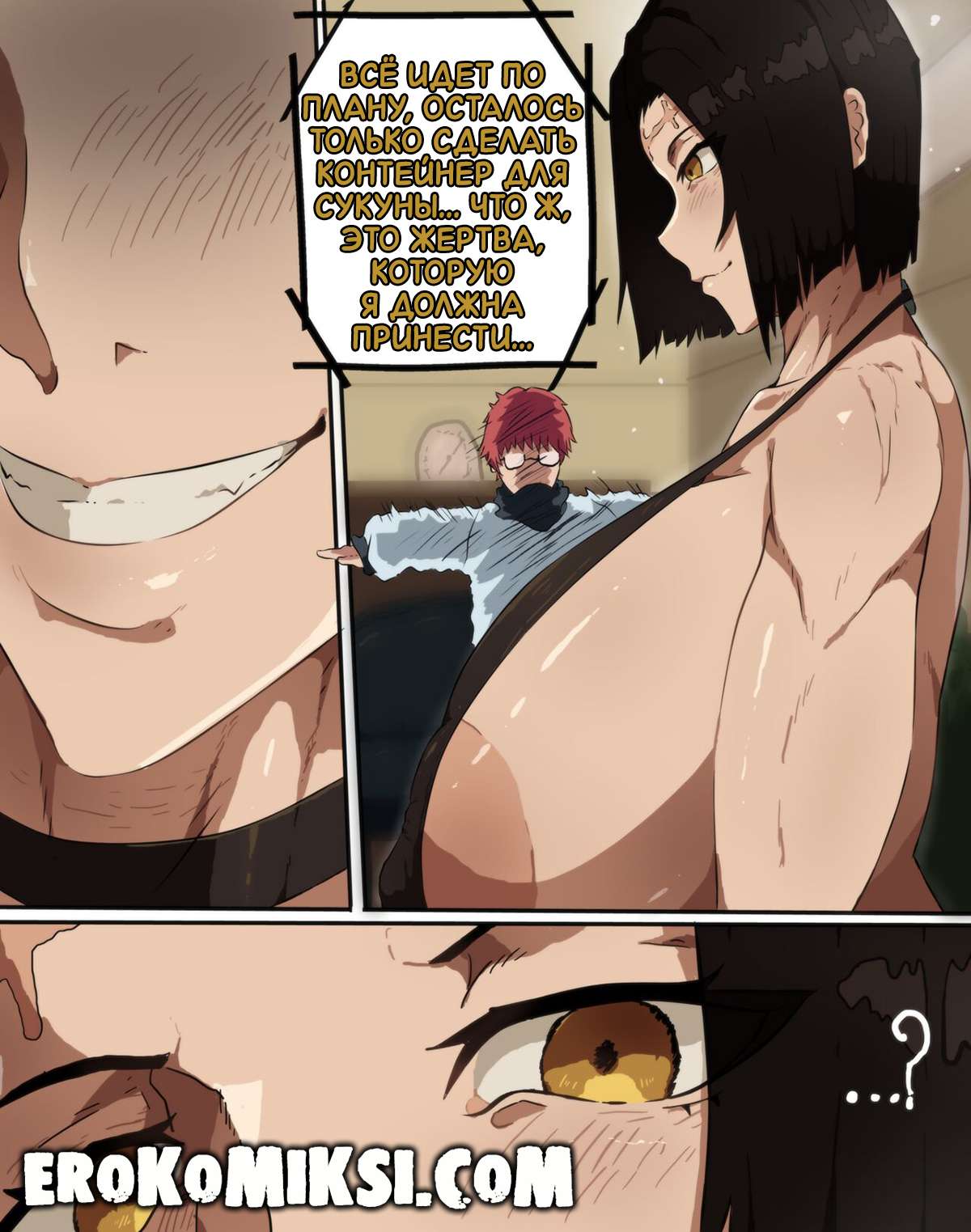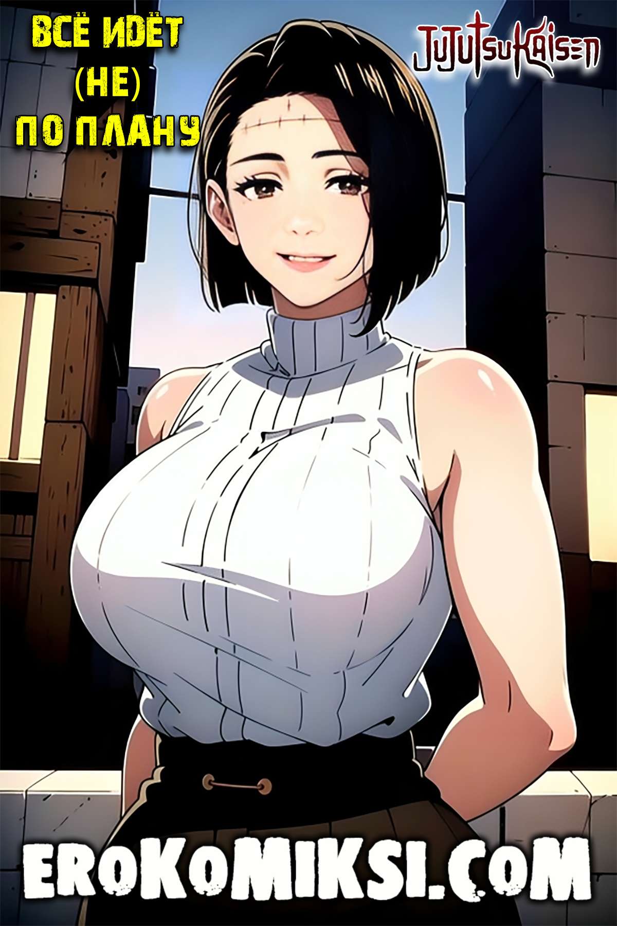 Секс комикс Магическая Битва. Всё идёт (не) по плану. Каори Итадори пришла к своему мужу Дзину полуобнажённая, чтобы принести его в жертву, но всё пошло не по её плану и не успев сообразить что происходит, Дзин уже трахал её огромные сиськи и ротик…