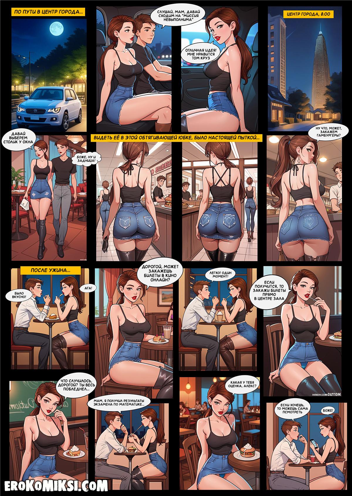Секс комикс Мамина Задница. Часть 1. Зная проблемы сына с учёбой, Хелен решает его замотивировать, и обещает Алексу, что даст ему трахнуть свою задницу, если он на отлично сдаст экзамен. Такая мотивация вдохновляет парня, и он как следует берётся за учёбу…