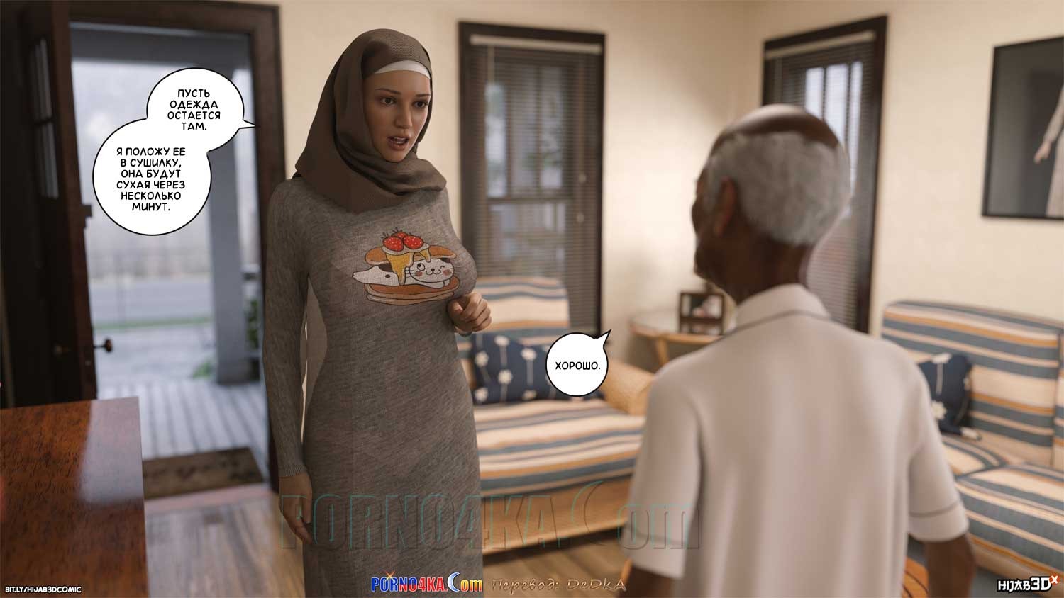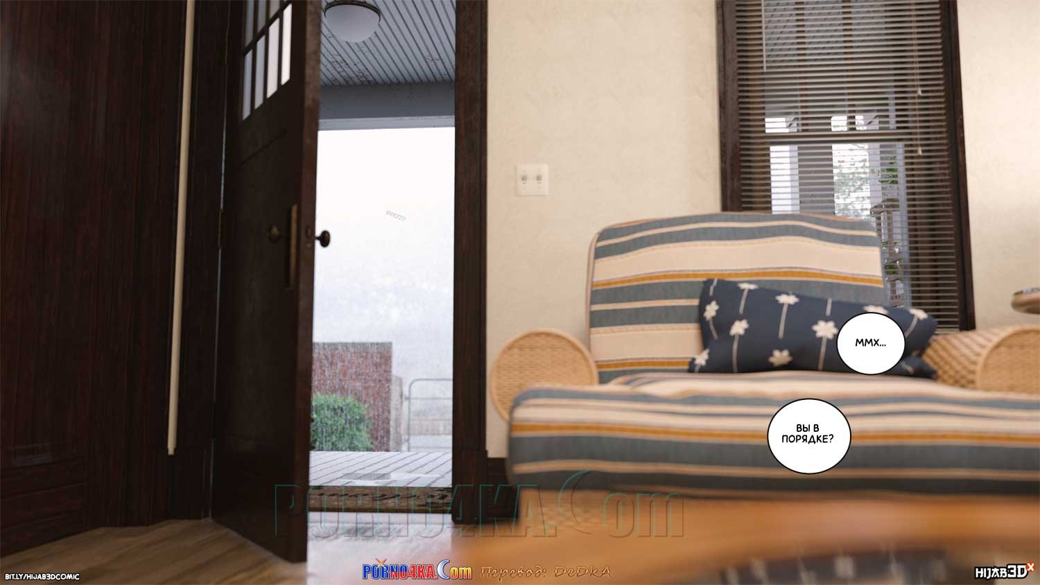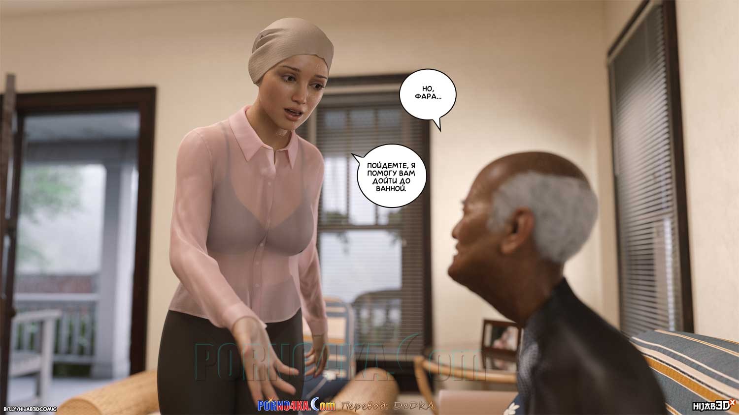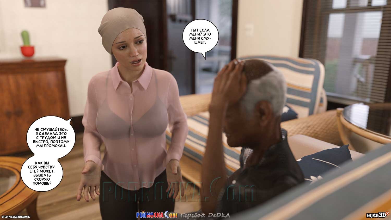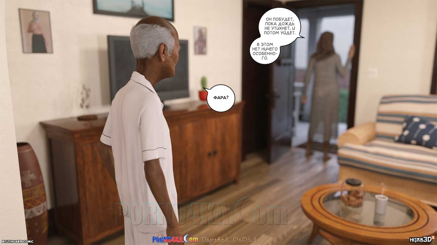 Секс комикс Массажист. Часть 3. После сеанса массажа, массажист вышел из дома Фары и внезапно упал в обморок. Сара заметила это и сразу выбежала на помощь. Дело было под дождем, поэтому оба они промокли и уже в доме им обоим нужно было переодеться в сухое. А для того, чтобы переодеться, нужно сначала раздеться…