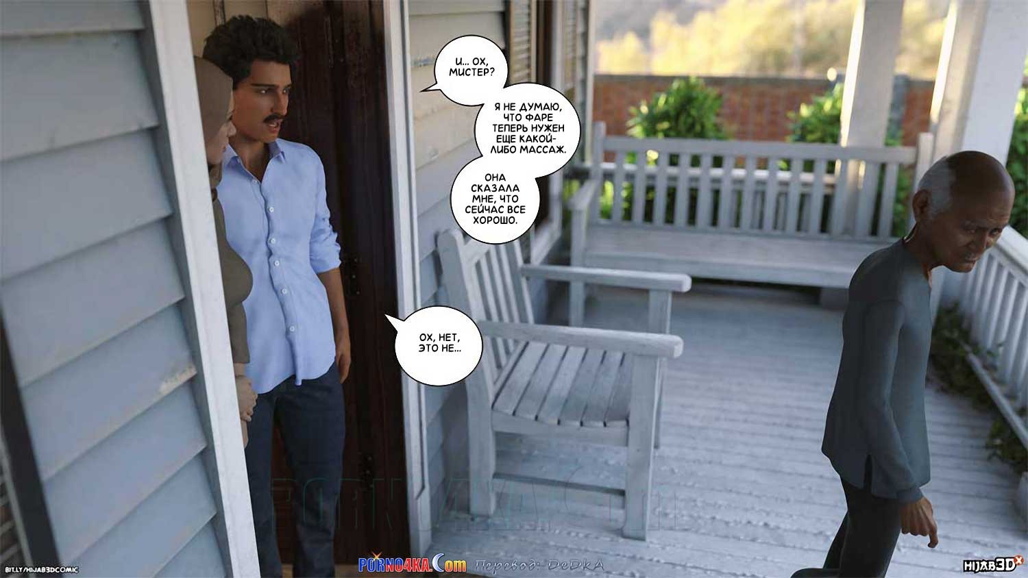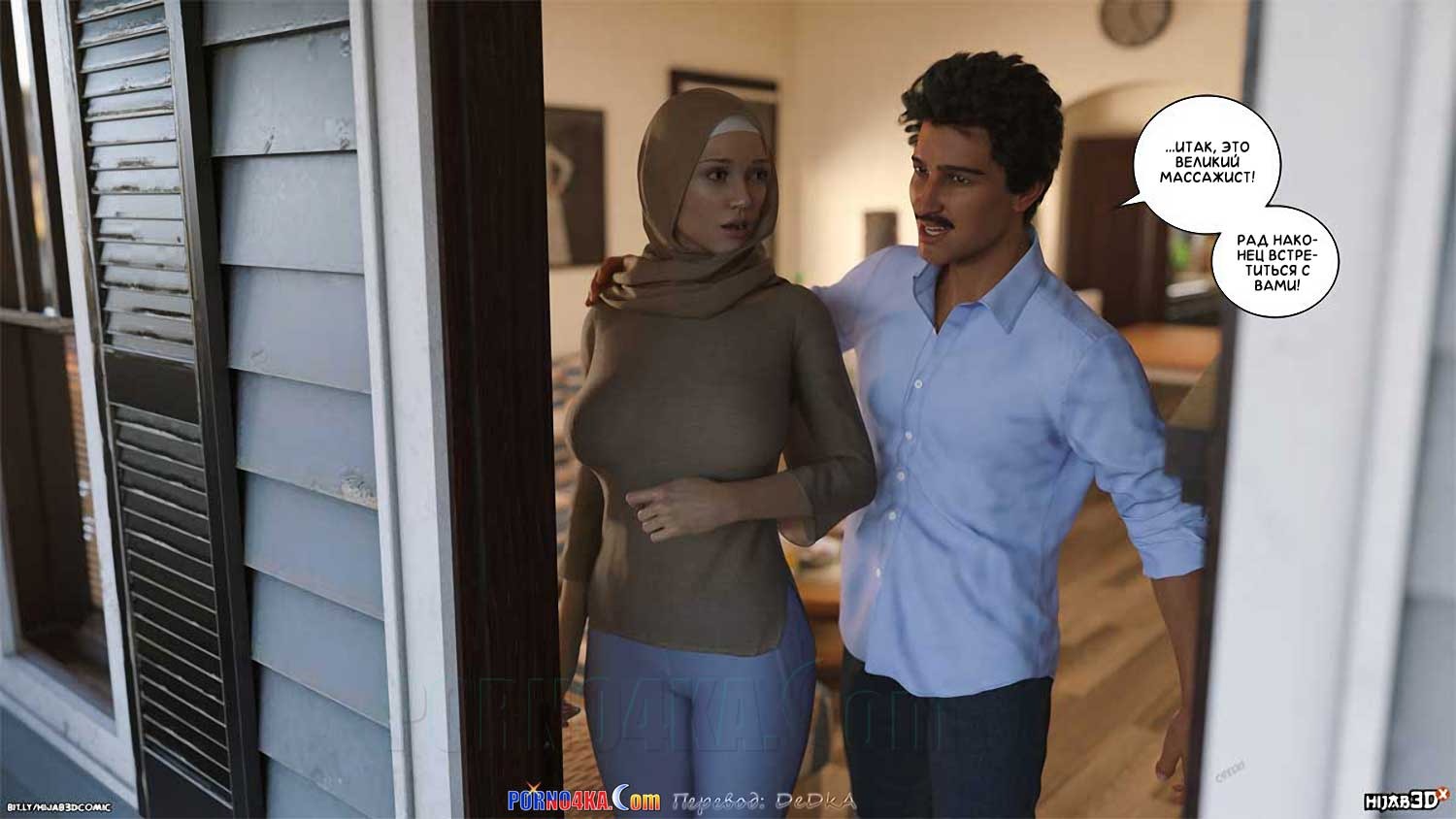 Секс комикс Массажист. Часть 5. Парень Фары, Юсеф, зная, что матери Фары нет дома, решил навестить Фару, чтобы как следует развлечься, но, как раз в то время, когда он появился в доме Фары, она ожидала визита массажиста…