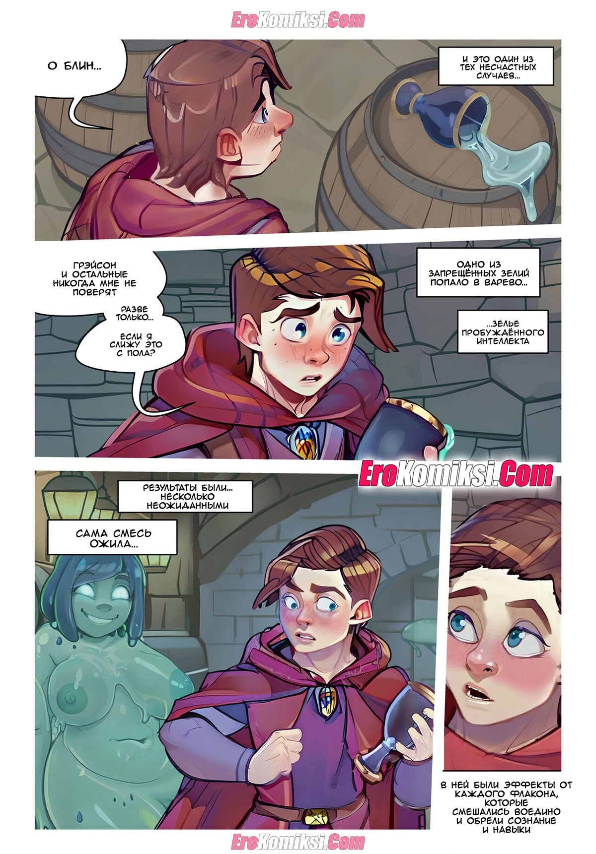 Секс комикс Мир Гринда. Вайрдская наука. Часть 2. Grind World Парень отправился в подвал, чтобы выполнить задание посвещения. Там он наткнулся на горячую красотку из слизи. Парень разделся перед ней, после чего красотка стала сосать его большой хуй…