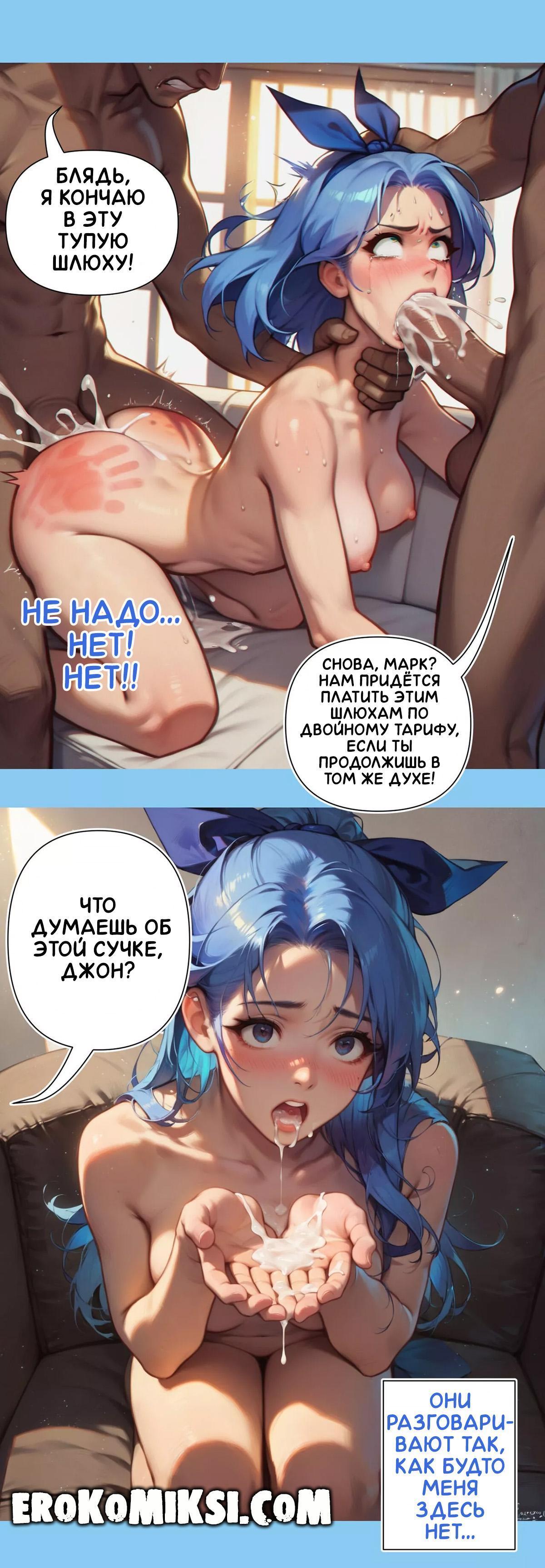 Секс комикс Мой парень продал меня за видеоигру. Парень Мины купил ей билет в мега модный бассейн, но не сказал, что обменял её на деньги, чтобы купить себе видеоигру. Мина была в шоке, что с ней так поступили, но теперь ей придётся обслужить кучу мужиков с большими членами. Мужики раздели Мину и начали трахать её сначала в рот, а затем в киску и задницу, от чего девушка стала постепенно получать удовольствие. Они до краёв заполнили Мину своей спермой и Мина в конце концов осталась крайне довольна, что получила билет в этот бассейн…