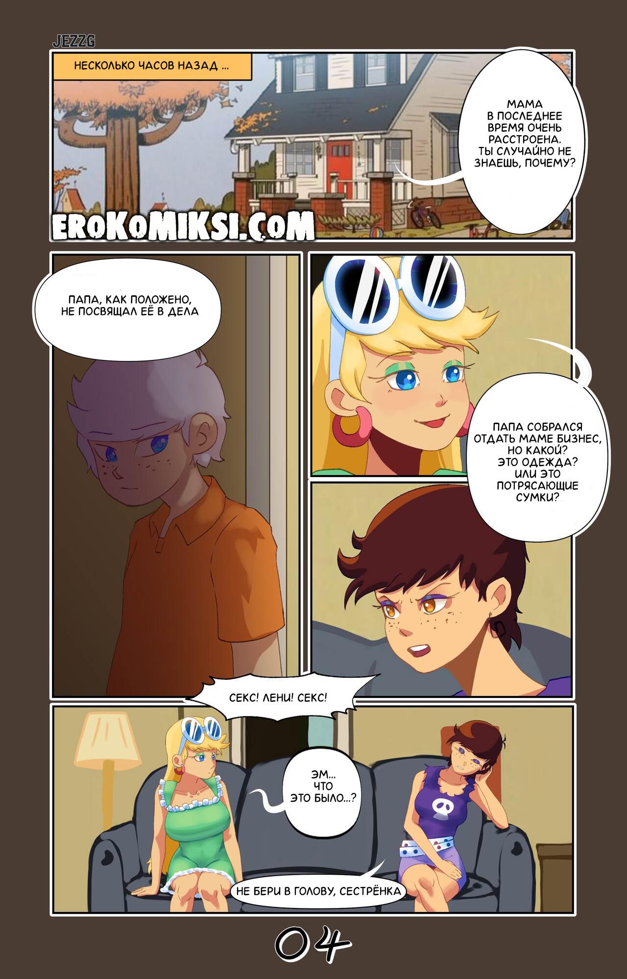 Секс комикс Мой Шумный Дом. Ночной Визит. Услышав разговор сестёр, Линкольн узнаёт, что его любимая мамочка уже давно не занимается сексом и из-за этого, ходит в понуром состоянии. Сынок решил, что нужно порадовать свою сисястую мамашу и приходит к ней ночью в спальню, чтобы как следует оттрахать…
