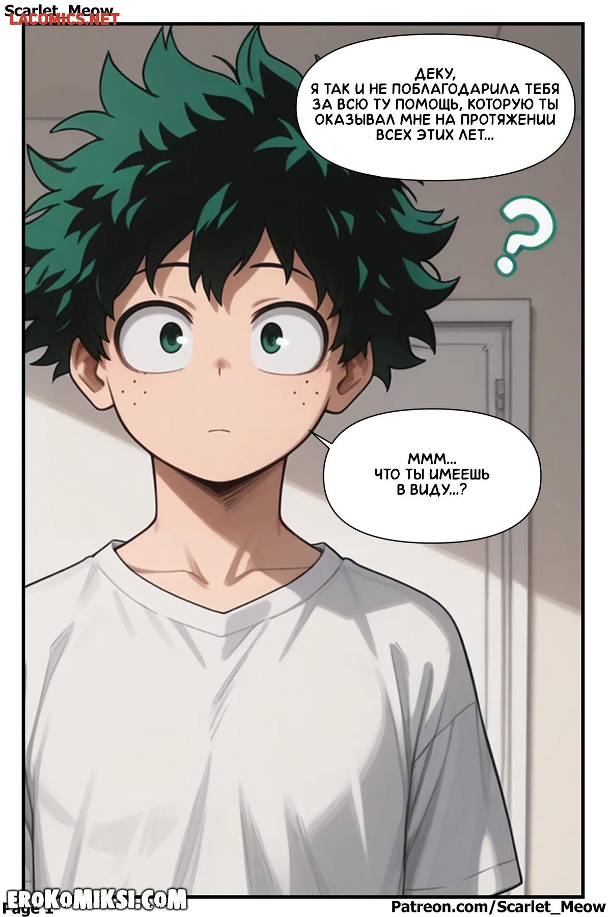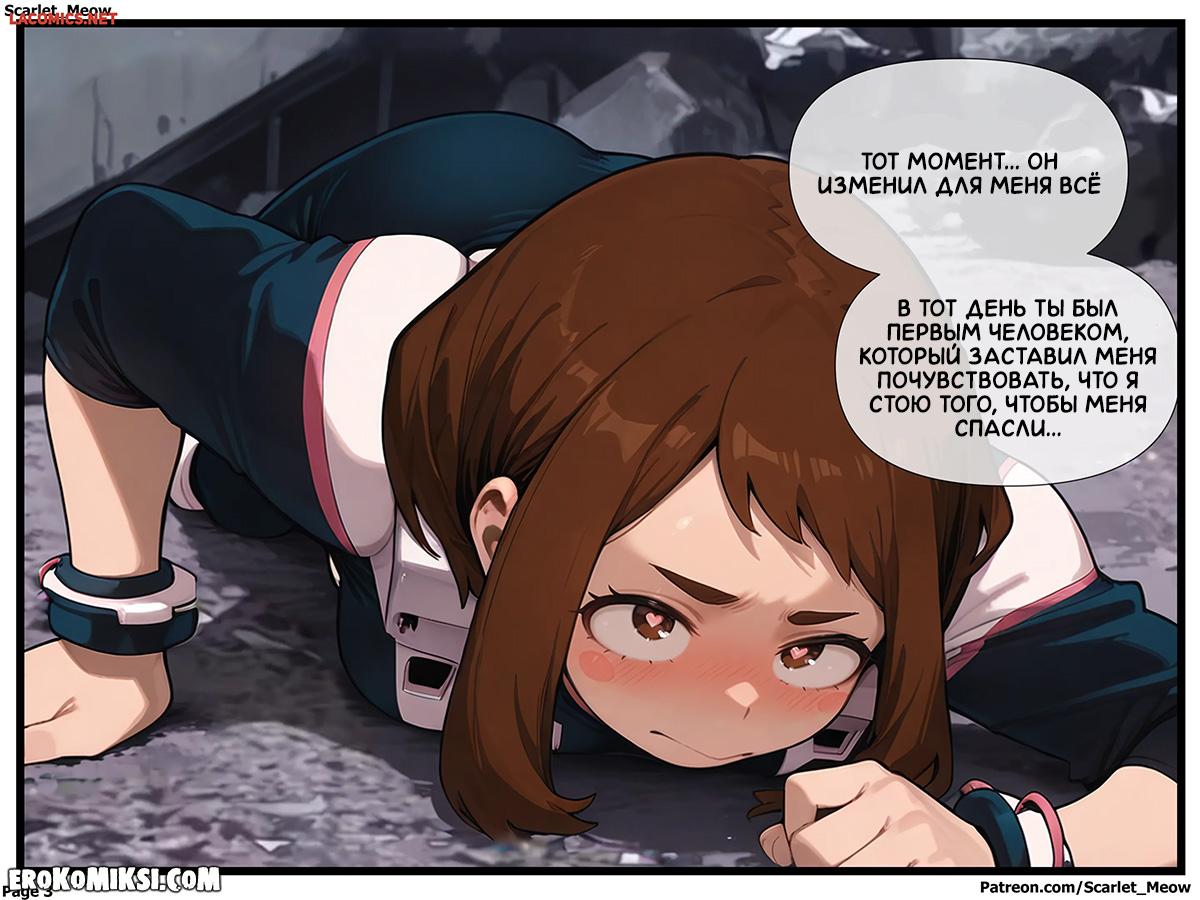 Порно комикс Моя геройская академия. Серьёзность моих чувств. В качестве благодарности за всё, что Деку для неё сделал, Очако решает подарить ему свою киску. Увидев огромные сиськи Очако и её сочную киску, он моментально возбуждается и начинает трахать красавицу со всей страстью.