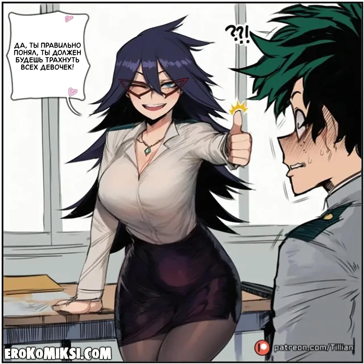 Секс комикс Моя Геройская Академия. Специальное задание для Деку. Деку обладает огромной выносливостью, поэтому ему дают важное задание – трахнуть всех студенток академии и удовлетворить их сексуальную похоть…