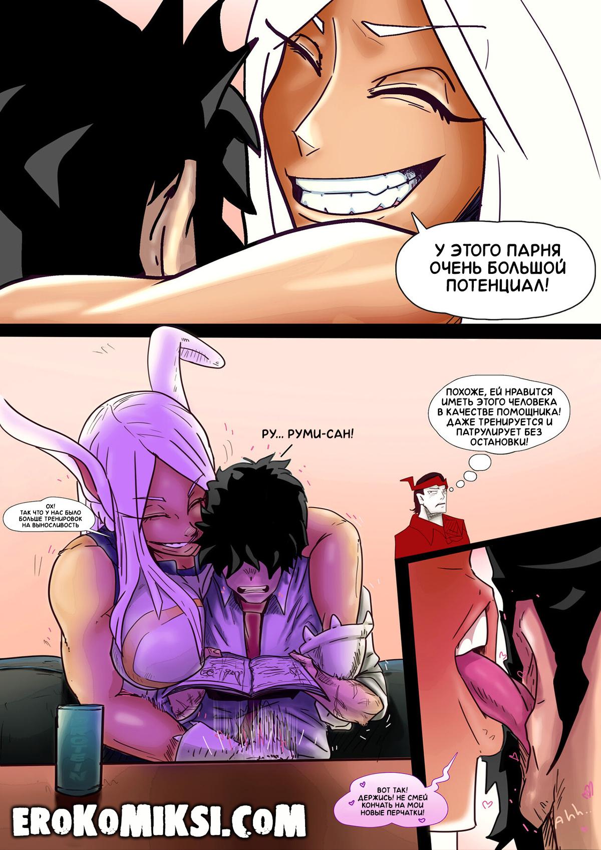 Секс комикс Моя геройская академия. Тренировка выносливости. Мидория получил в качестве своего тренера Руми-Сан, которая сразу же приступила к тренировкам выносливости паренька. Спустя месяц, желаемый результат был достигнут и качестве награды за упорные тренировки, Руми сделала Мидории незабываемый минет…