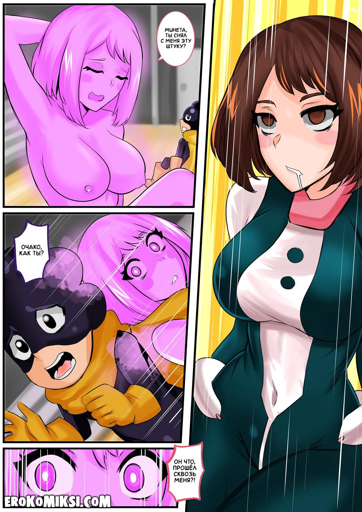 Секс комикс Моя геройская академия. Виноград в моей голове. Поменявшись телами с Очако, Минета решил не упускать такую возможность, и реализовать свою давнюю мечту – увидеть голыми девчонок академии, поэтому отправился в женскую душевую…