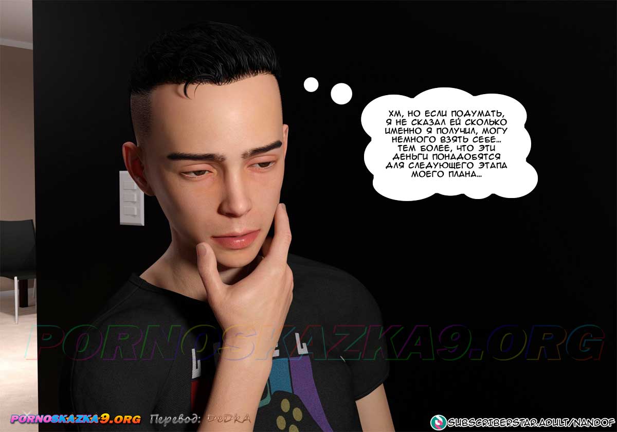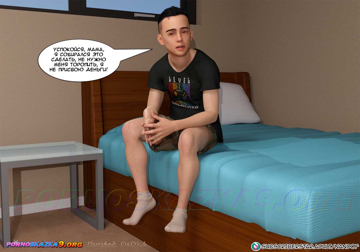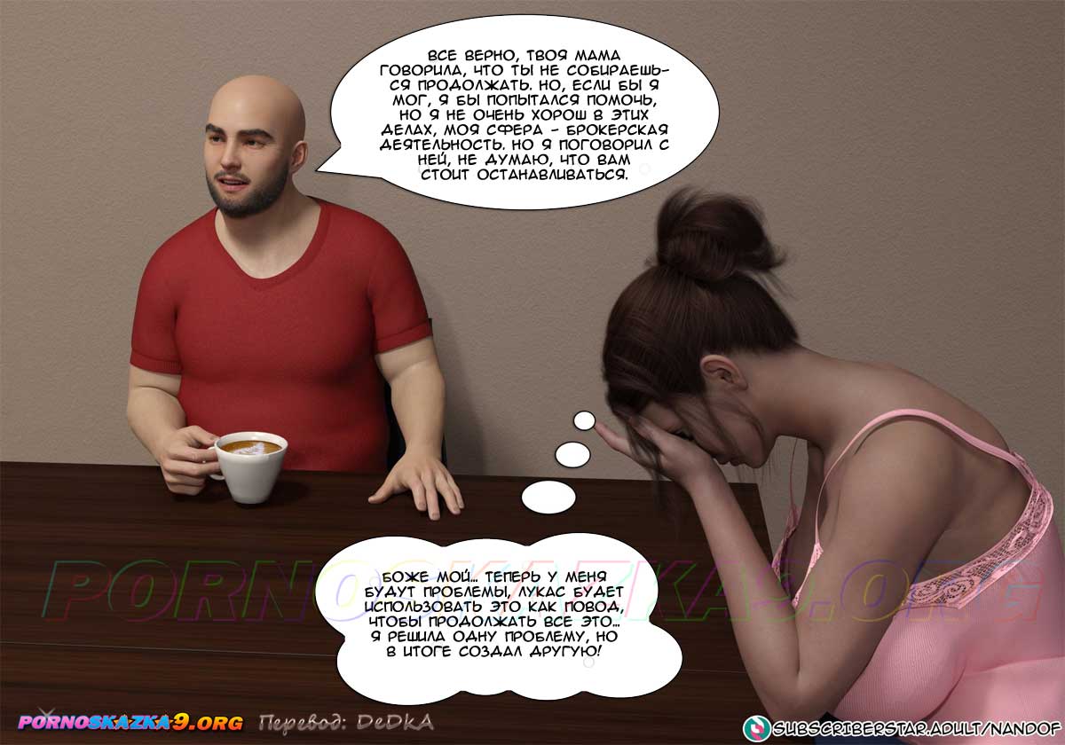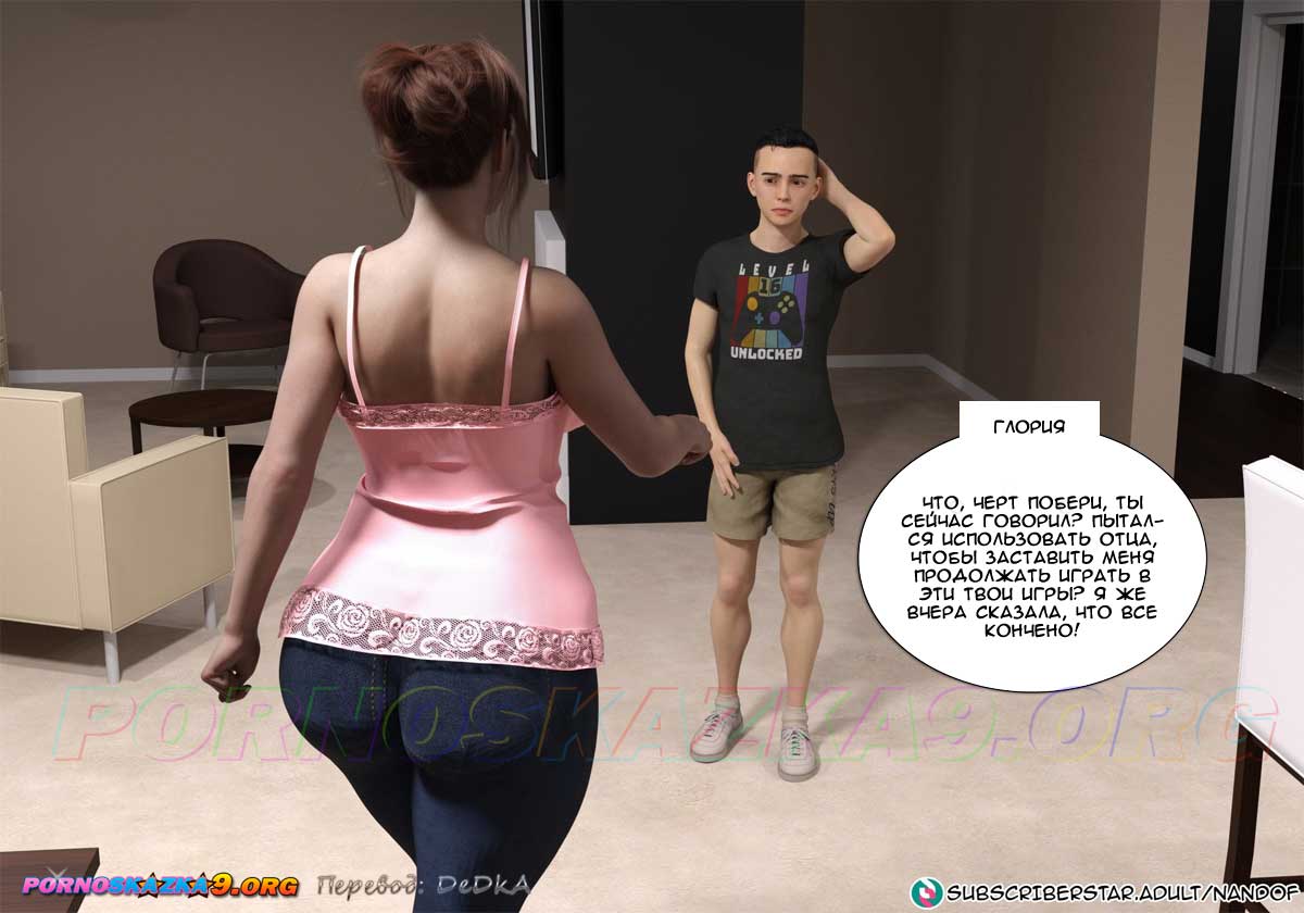 Секс комикс Моя мама порнозвезда. Часть 6. Глория сказала мужу, что с помощью Лукаса ей яко бы удалось сделать онлайн-инвестицию и получить доход, достаточный для того, чтобы оплатить долги по ипотеке, но так как это рискованный бизнес, она не намерена продолжать. Но муж, который сейчас не имеет работы, попросил ее подумать о том, чтобы продолжить это дело… Знал бы он в чем заключается эта совместная работа его жены и сына…