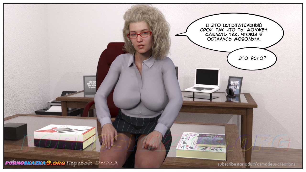 Секс комикс Моя новая работа. Часть 1. Генри Робертсона приняли на работу, и в первый же рабочий день его вызвала к себе начальница, которая без острой необходимости никогда не вызывает подчиненных к себе в кабинет…