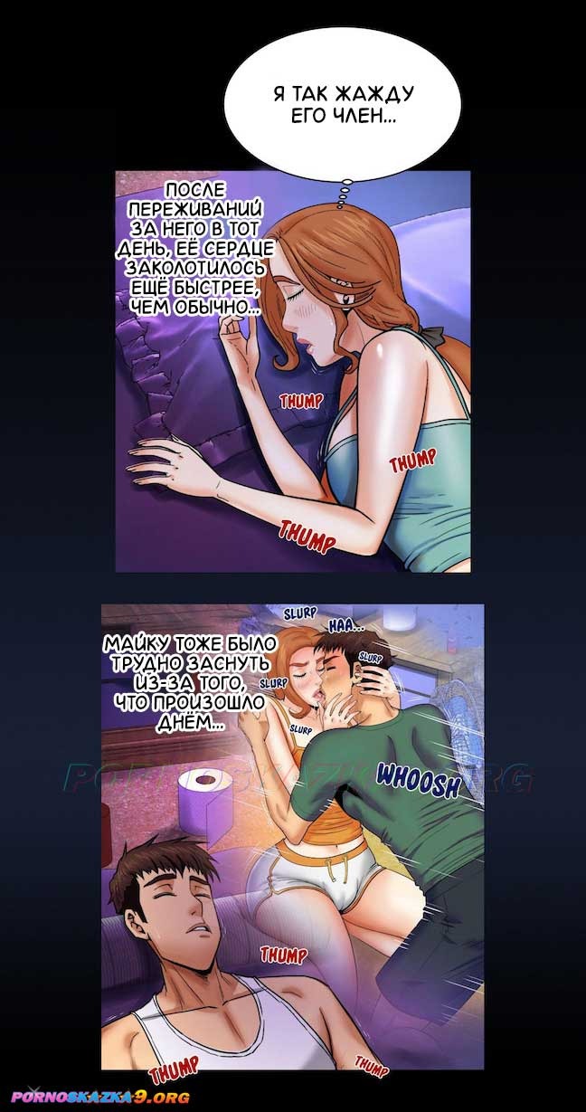 Секс комикс Моя тетя. Часть 13. Без Цензуры!!! Ночью, Майк признаётся Саре, что испытывает к ней чувство любви, а Сара в свою очередь, видит в нём мужчину, а не племянника, тем более, выясняется, что они не родственники. Их вновь окатывает волна возбуждения и Майк вылизывает киску Сары, и готовиться вставить в неё свой огромный член! Но опять облом…опять им кто-то мешает…