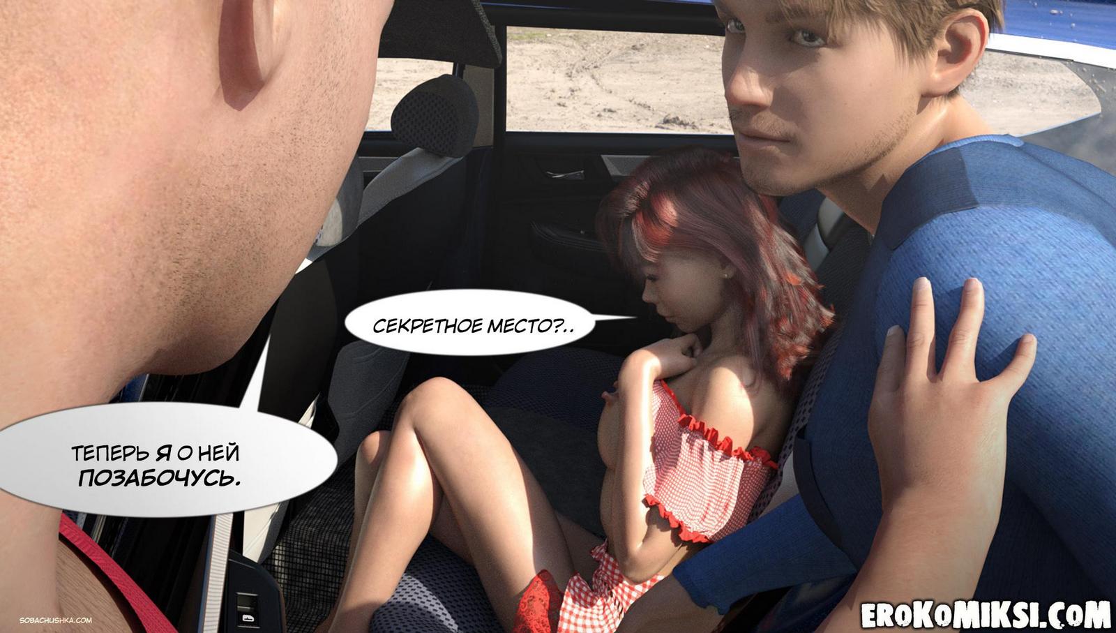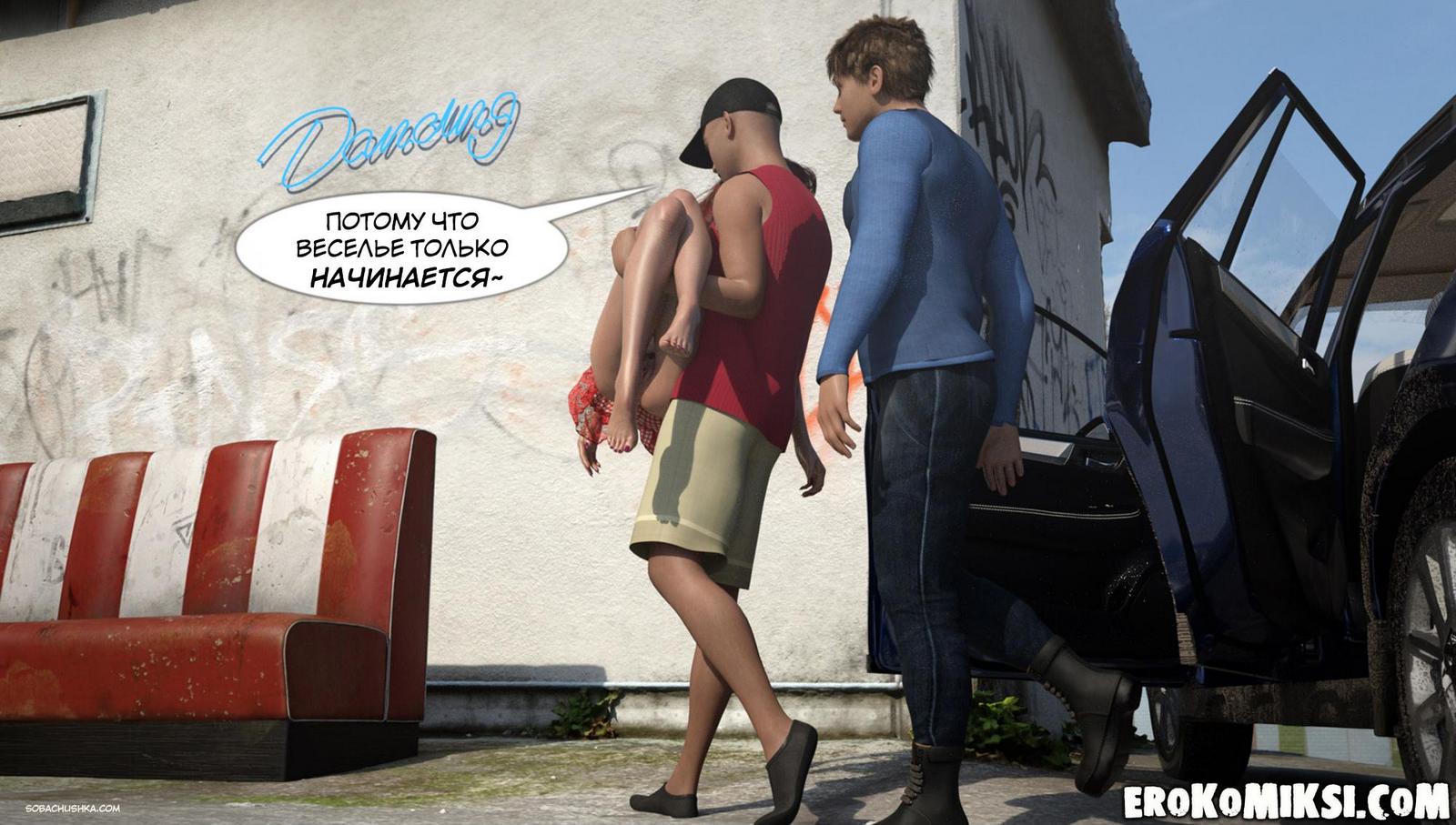 Секс комикс Моя училка. Часть 3. Возбужденные парни уже успели спустить первый заряд спермы в свою училку, но им захотелось гораздо большего и они решили везти сексуальную телку в свое «секретное место». Уж там они хотели повеселиться с училкой в максимально комфортной для себя обстановке…