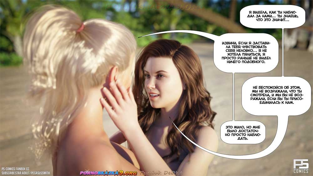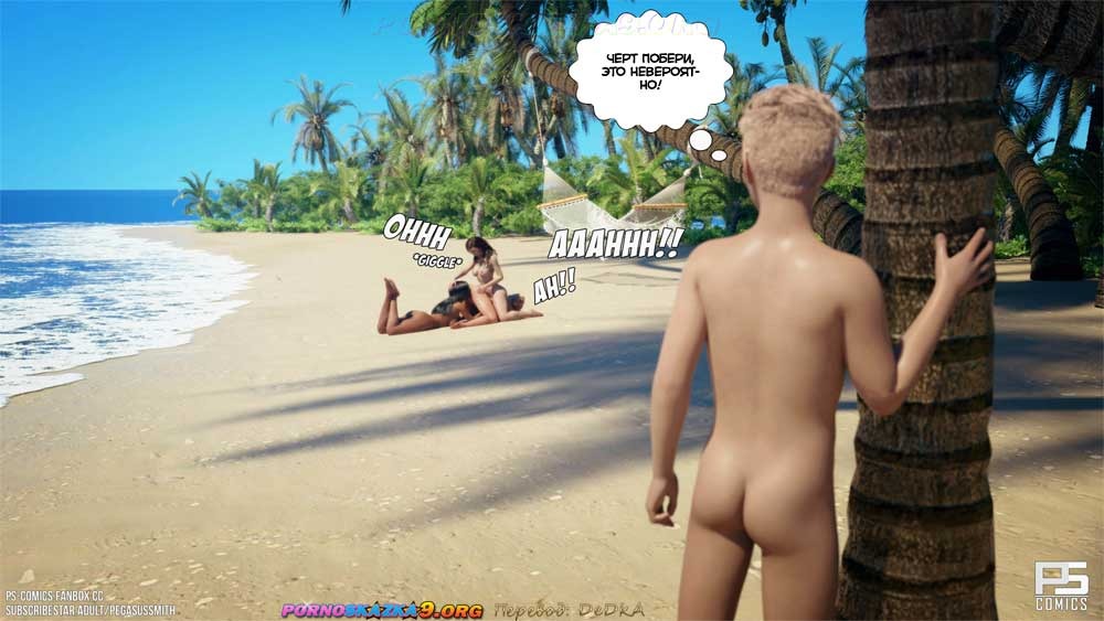 Секс комикс Нагишом. Нудистский курорт. Часть 17. Узрев оргию в Джунглях, Келли совершенно обалдела. В таком шоковом состоянии две сексуальные островитянки и вывели ее из джунглей к берегу океана…