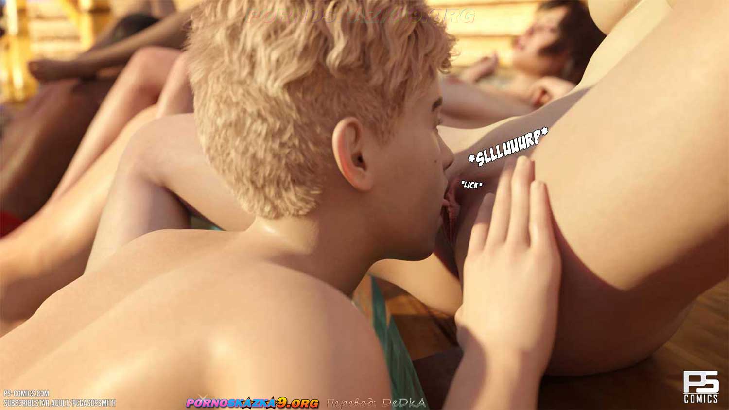 Секс комикс Нагишом. Нудистский курорт. Часть 21. Дарнелл и Шонда проснулись на яхте и обнаружили, что Андре снова улизнул на остров. Между тем к Брэнди, Келли и Дилану приходят местные островитянки и приглашают их на вечеринку…