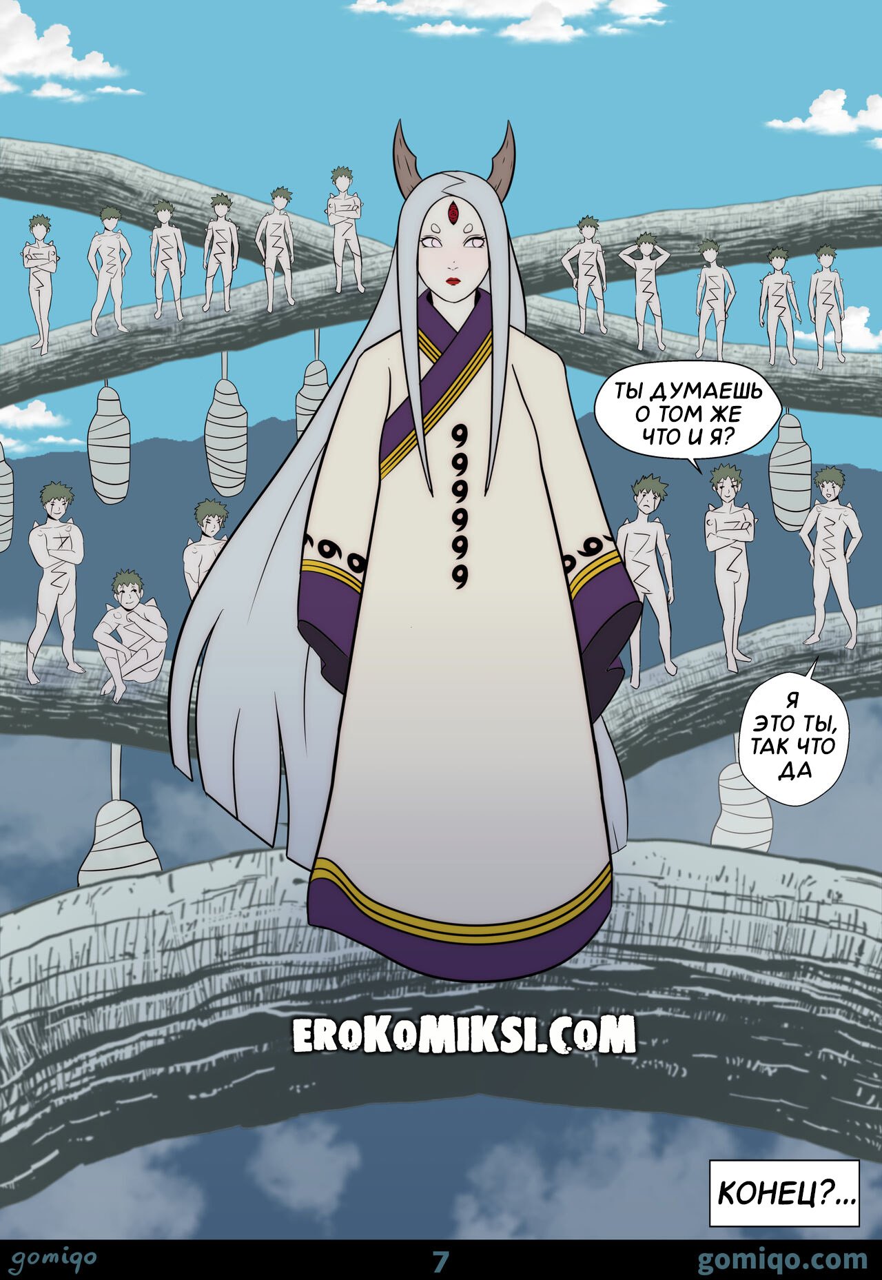 Секс комикс Наруто. Бесконечный Тсукуеми. Infinite Tsukuyomi. Gomiqo. Аппетитные большегрудые красотки просто без ума от огромного члена парня. Девушки раздеваются и делают ему минет, после чего дают ему себя хорошенько трахнуть, получая нереальное удовольствие…