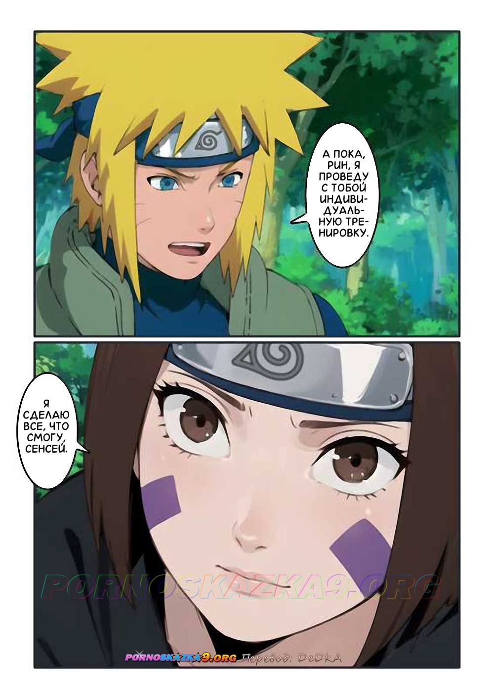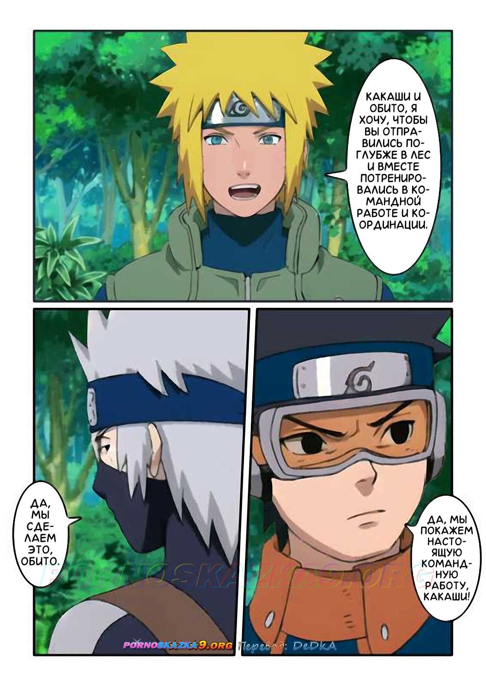 Секс комикс Наруто. Частные уроки Минато. Сенсей приказал Какаши и Обито отправиться поглубже в лес и вместе потренироваться в командной работе и координации. А сам со всей серьезностью и ответственностью, пользуясь тем, что Какаши уже далеко, занялся с Рин индивидуальной… анальной тренировкой…
