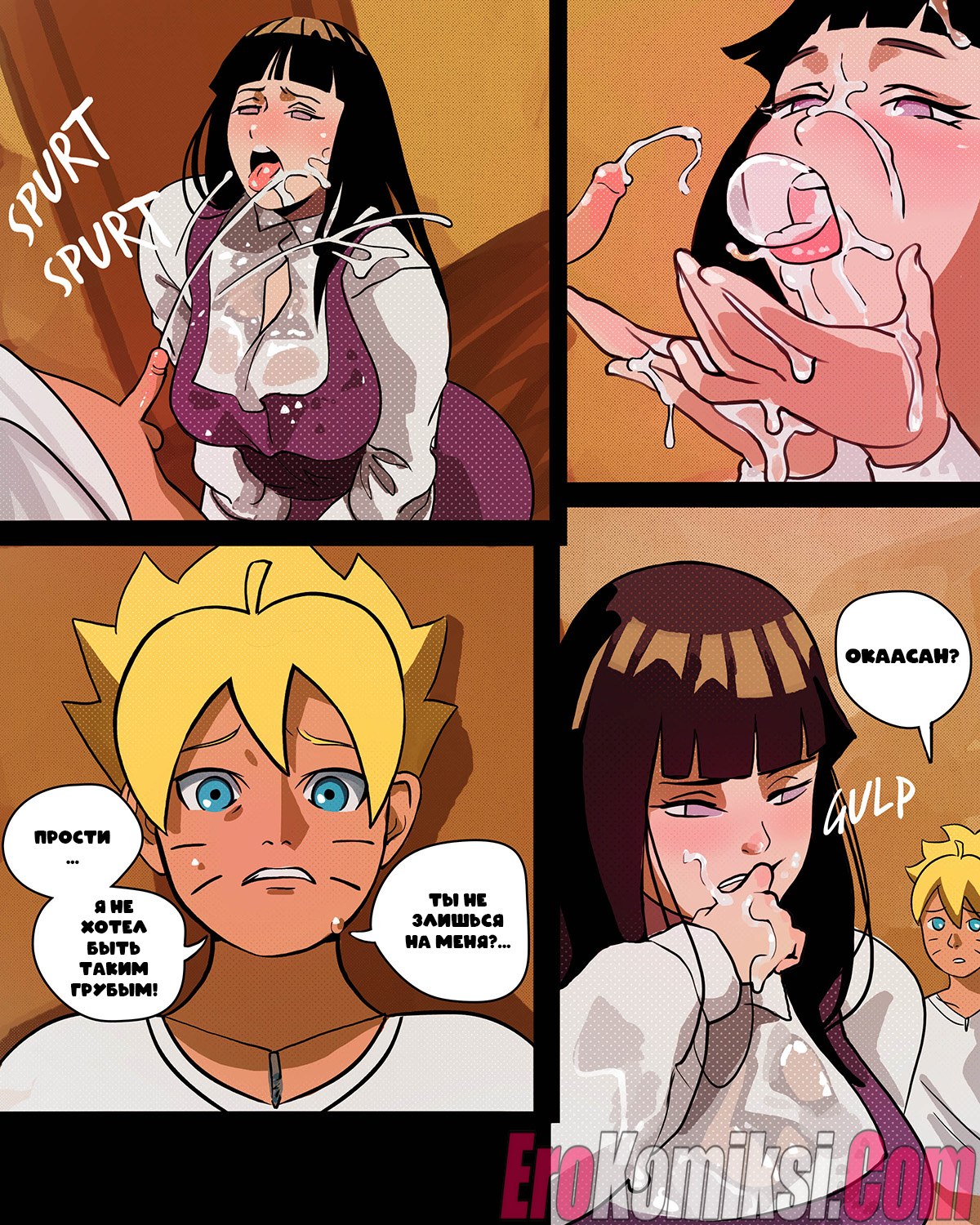 Секс комикс Наруто. Хината и Боруто. Часть 2. BurgersNShakes. Hinatas Addiction. Boruto Красотка Хината невероятно рада возвращению своего мужа. Красотка скорее разделась перед парнем и стала сосать его большой хуй, после чего дала ему себя выебать во все дырочки.
