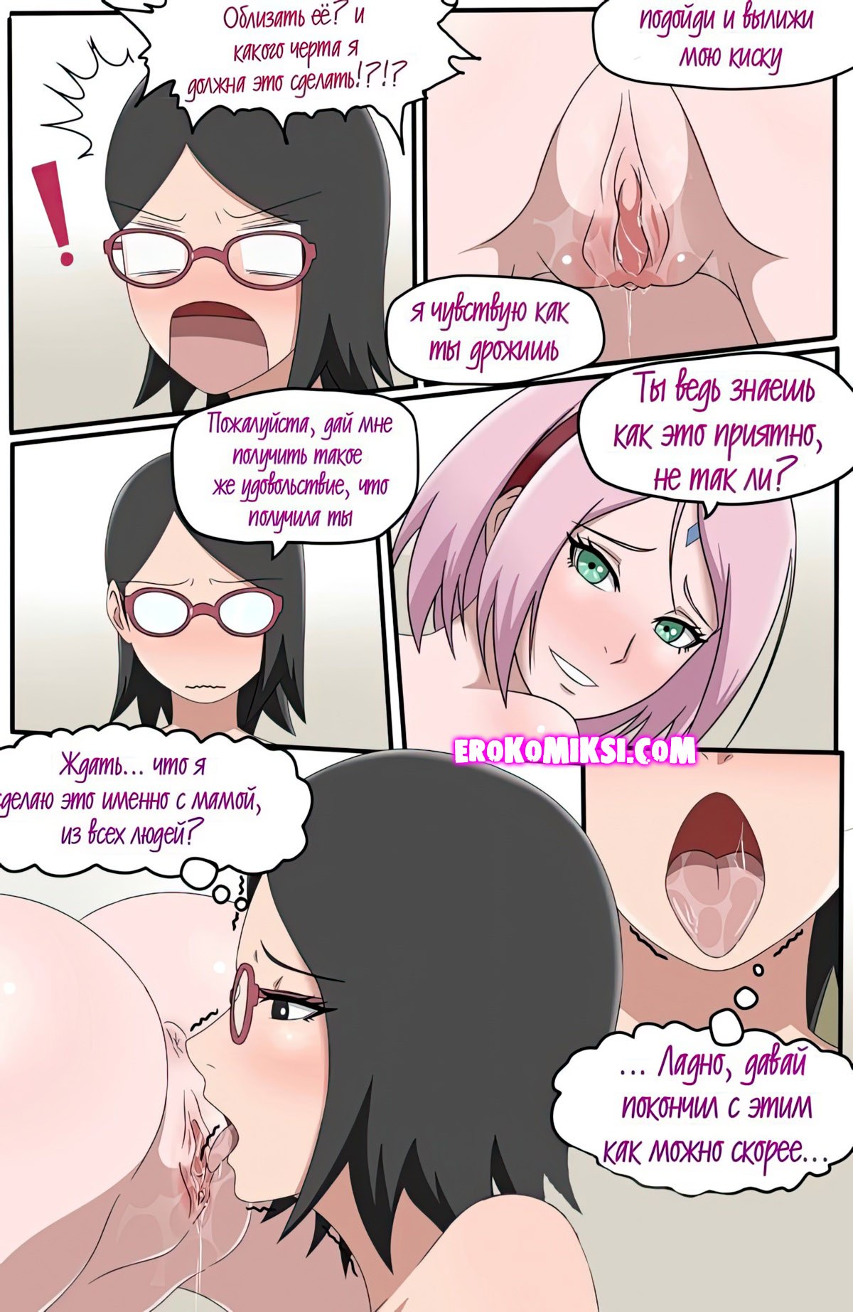 Секс комикс Наруто. Материнское прикосновение. Сарада вернулась домой раньше чем думала Сакура и застала мать за непристойным поведением. Тогда женщина решила преподать урок дочке и научить её основам…