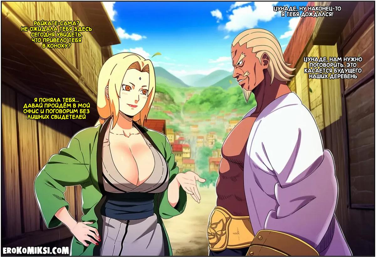 Секс комикс Наруто. Невероятные приключения Райкаге в Конохе. Часть 1. Райкаге отправили в Коноху, так как намечается война деревень, но обсудив с Цунаде предстоящую войну за несколькими бутылками саке, они пришли к выводу, что война не нужна обеим сторонам, а затем как следует потрахались, чтобы закрепить своё решение…