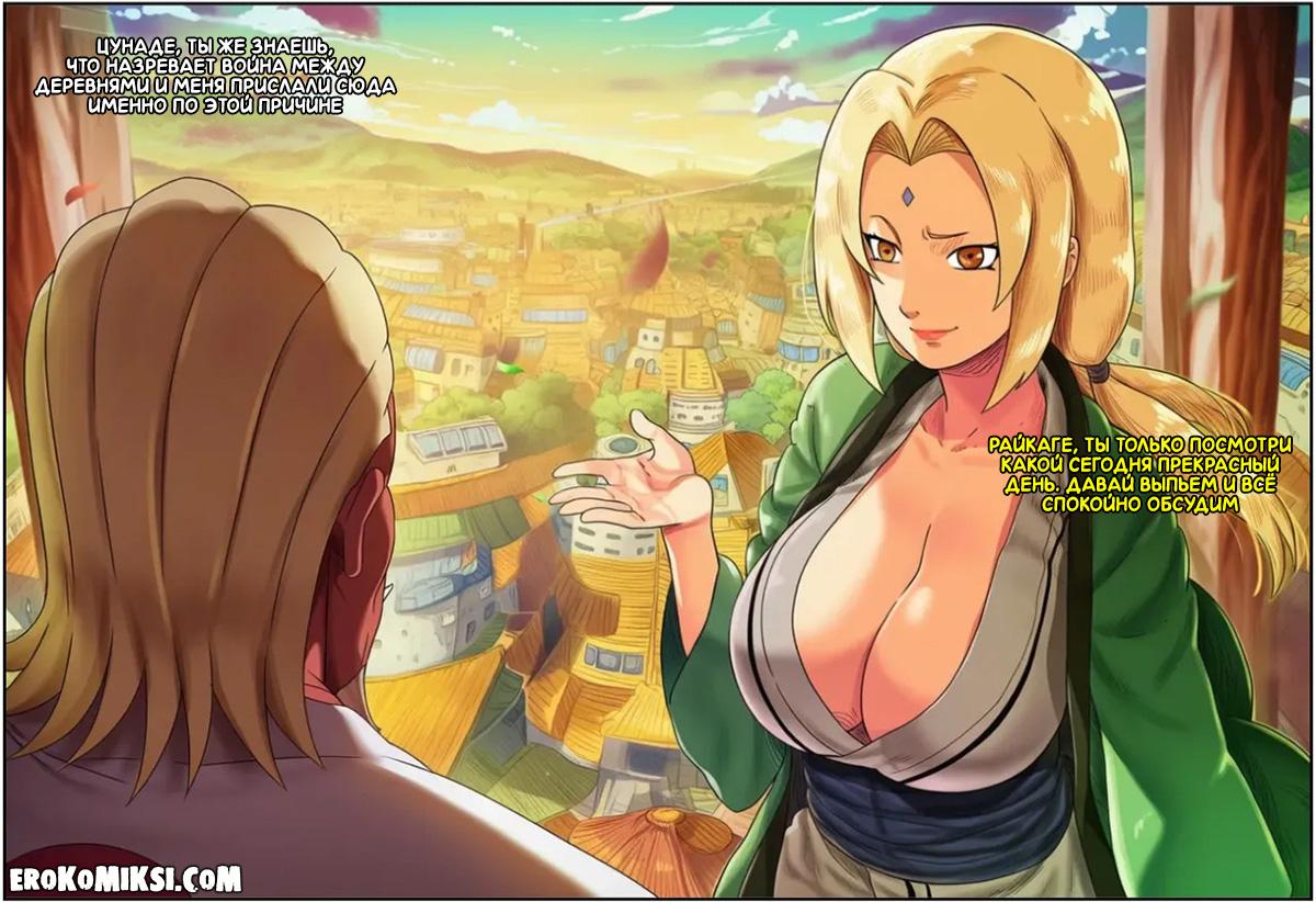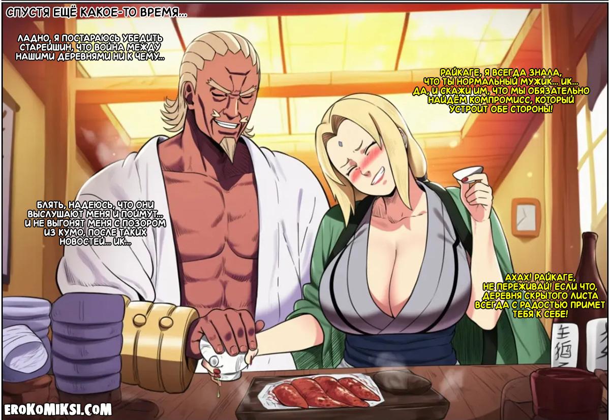 Секс комикс Наруто. Невероятные приключения Райкаге в Конохе. Часть 1. Райкаге отправили в Коноху, так как намечается война деревень, но обсудив с Цунаде предстоящую войну за несколькими бутылками саке, они пришли к выводу, что война не нужна обеим сторонам, а затем как следует потрахались, чтобы закрепить своё решение…