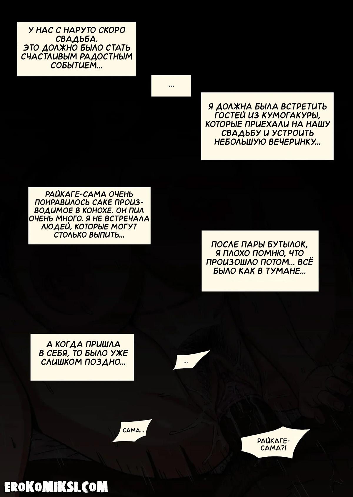 Секс комикс Наруто. Падшая невеста. Накануне свадьбы Хинаты и Наруто, к ним приехали гости. Хината добродушно встретила гостей и напоила их саке, Райкаге-Сама нажрался и начал приставать к Хинате, и в итоге оттрахал её тугую киску…