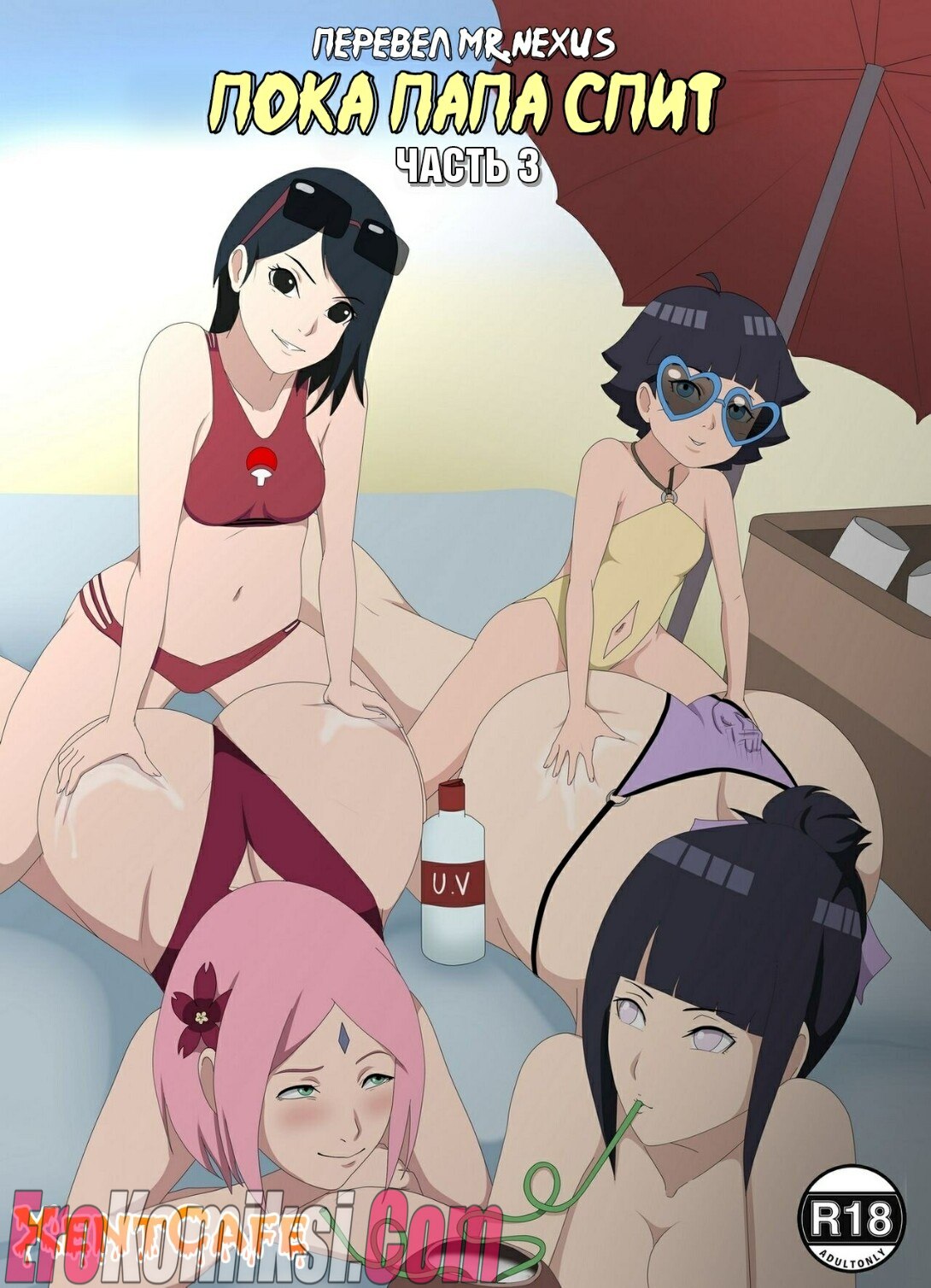 Секс комикс Наруто: Пока папа спит. Часть 3. While Daddy is Sleeping. Hades483 Боруто Пока парень спал, две молодые девушки решили повеселиться со своими мамками на пляже. Они уложили милф и стали делать им массаж, после чего стали ласкать их аппетитные дырочки.