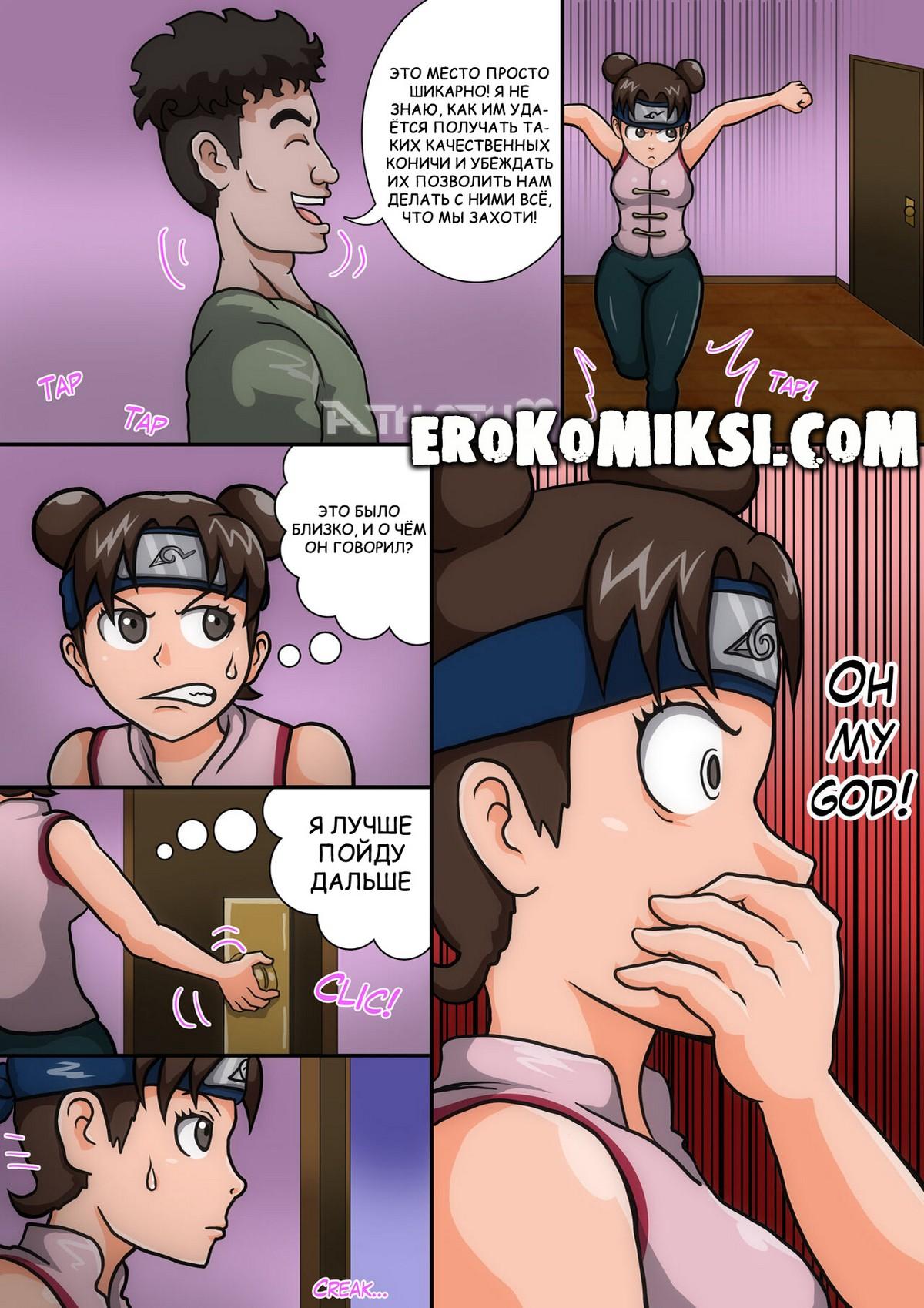 Секс комикс Наруто. В шкуре Куноичи. Тентен решила зайти в странное место для отдыха и пробралась в странную комнату, где была связанная Хината. После освобождения Хината, Тентен оглушили и она уже проснулась на специальном стуле связанной…