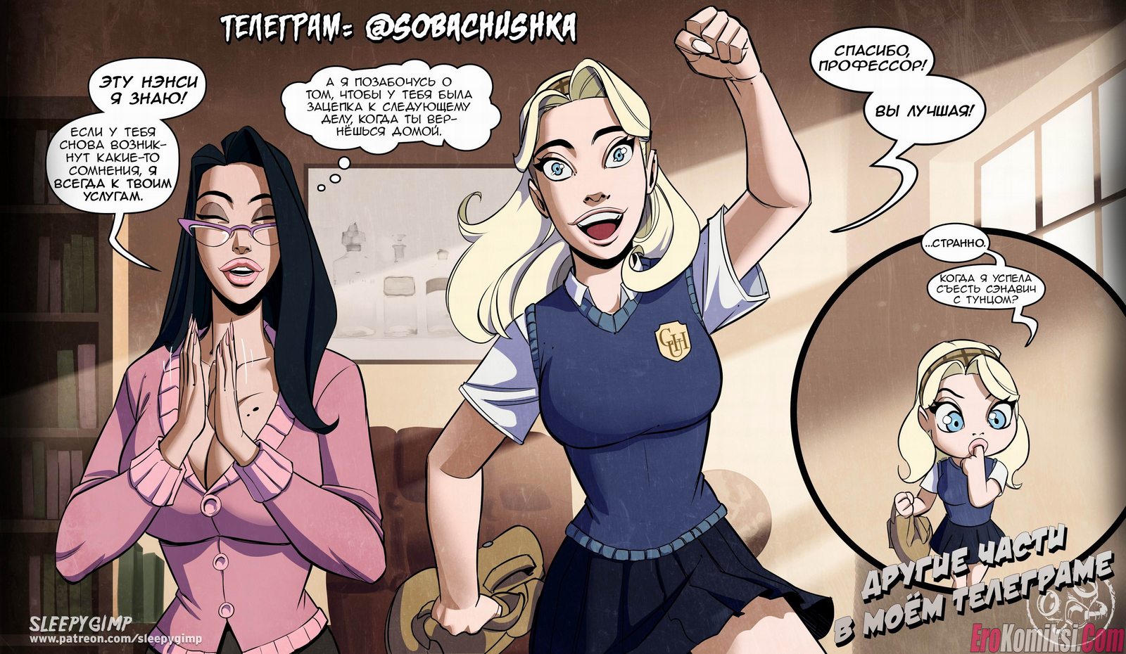 Секс комикс Нэнси Темплтон — Детективши больше нет! Знойная студенточка пришла за помощью к своему профессору. Но, как оказалось, этим самым профессором была всем нам известная большегрудая и похотливая милфа Эвелина…