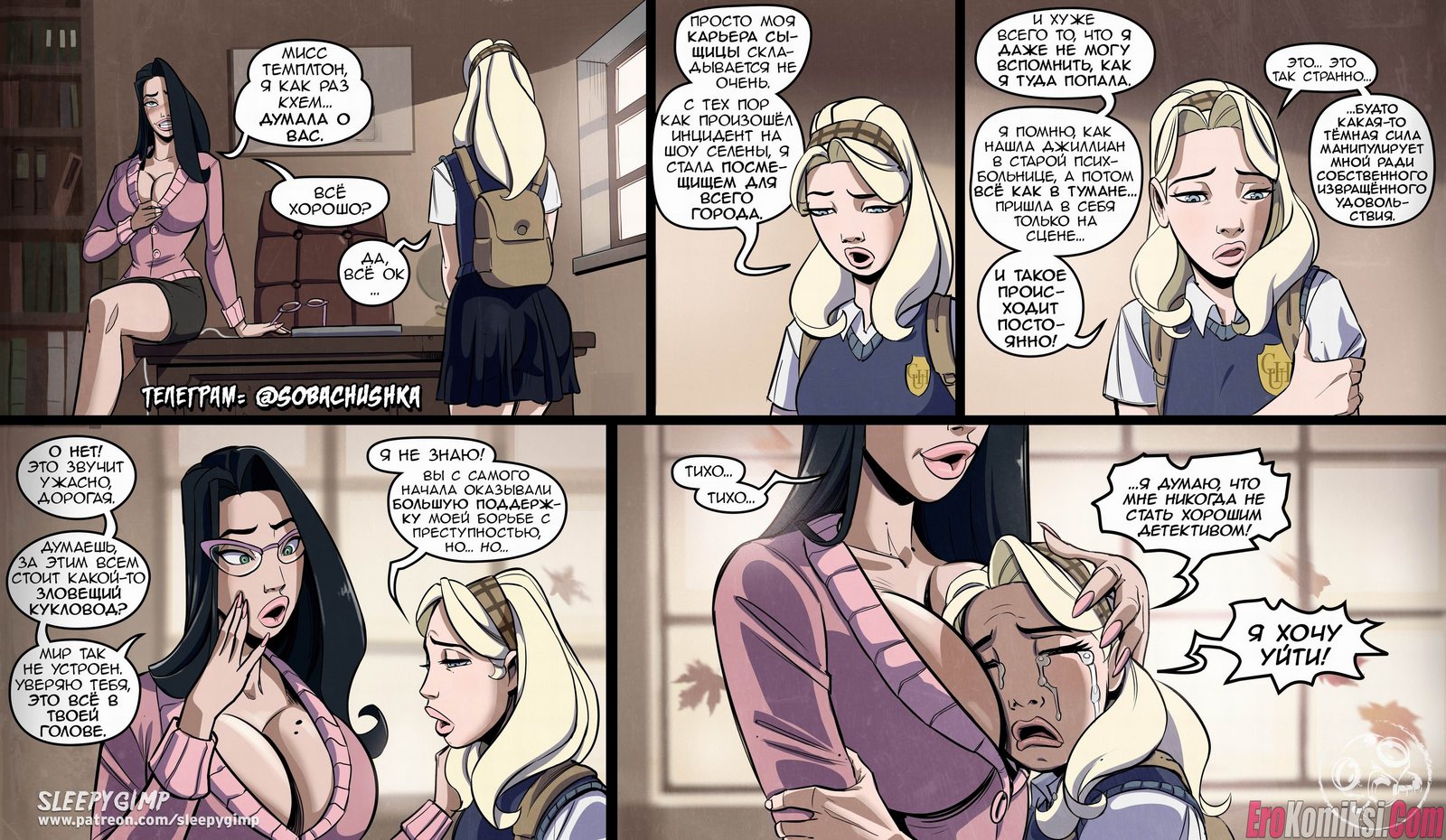 Секс комикс Нэнси Темплтон — Детективши больше нет! Знойная студенточка пришла за помощью к своему профессору. Но, как оказалось, этим самым профессором была всем нам известная большегрудая и похотливая милфа Эвелина…