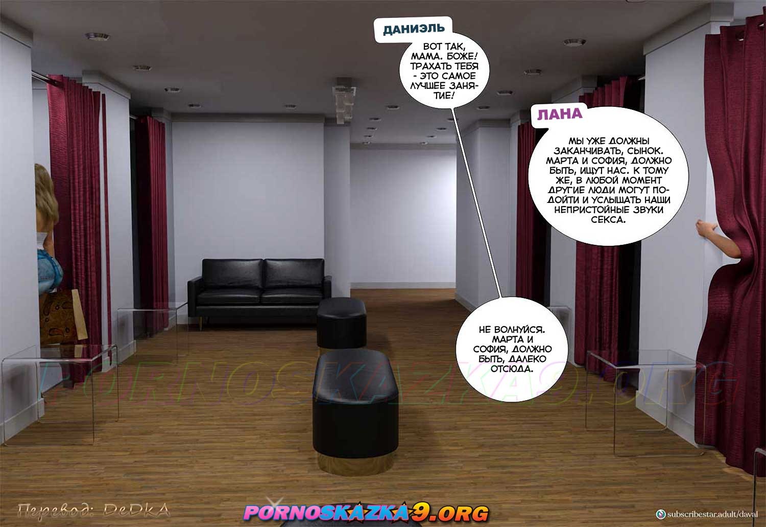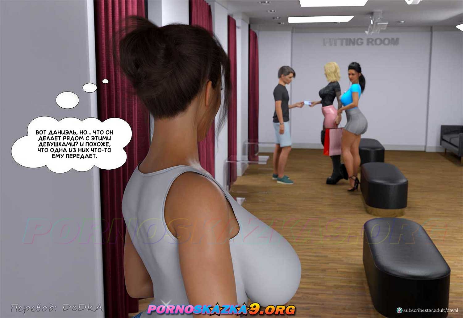 Секс комикс Непристойные желания мамаш. Часть 9. София продолжает попытки заманить Даниэля куда-нибудь, где они останутся наедине, и соблазнить его, пока что ей не очень везет в этом. Между тем Даниэль случайно встречается в супермаркете со своей сексуальной кузиной Шэрон и ее не менее сексуальной подругой блондинкой Сарой…