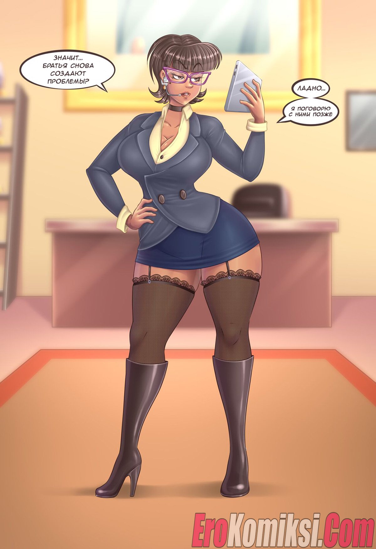Секс комикс Очень важная встреча. Сексуально озабоченный босс крупной компании время от времени не прочь расслабиться со своими сотрудниками. Так бывает не только с нынешними работниками, но и с вновь прибывшими в компанию. И вот в очередной раз, когда в её фирму пришли новые люди, она провела с ними важную встречу, объяснив что к чему…(они трахались короче)…