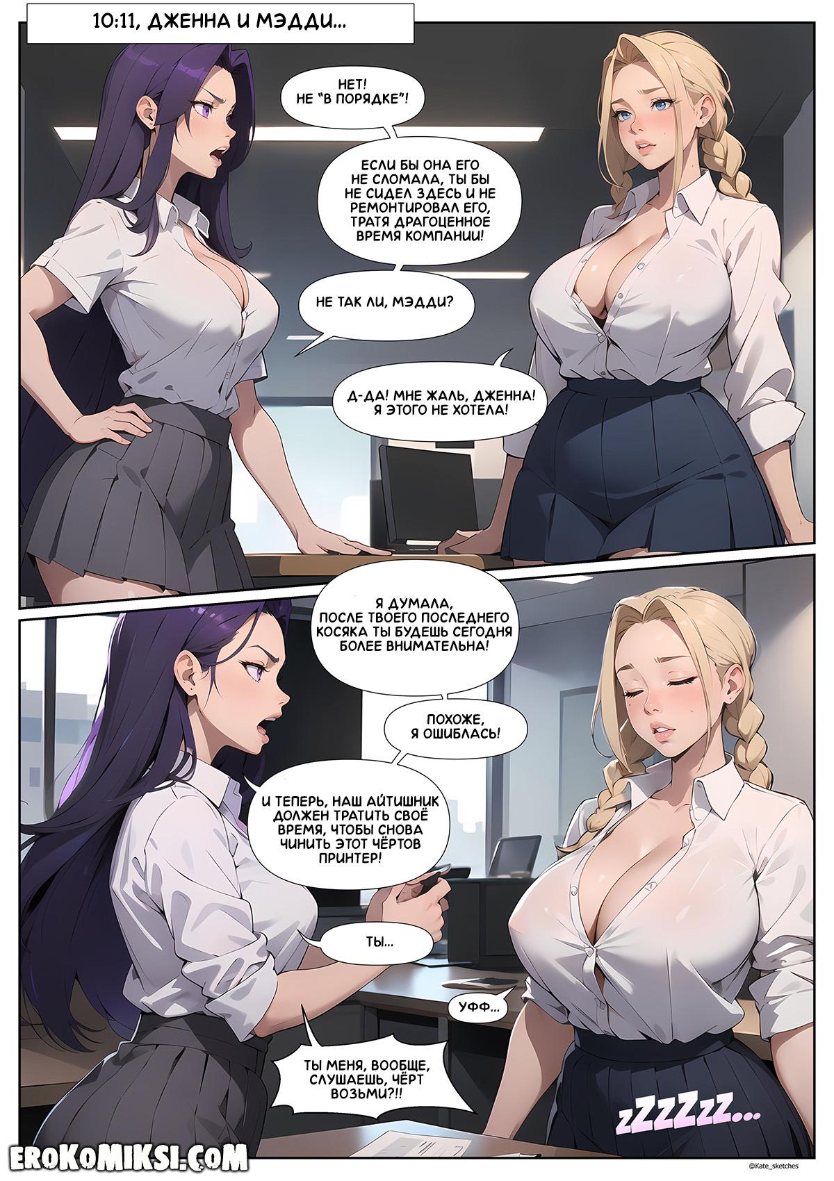Секс комикс Офис. Эпизод 5. Пятница. Все в офисе в ожидании конца рабочего дня, так как после все решают отправиться выпить после трудной рабочей недели, а пока, все занимаются своими обыденными делами, не упуская возможности поразвлечься с огромным членом своего нового айтишника.
