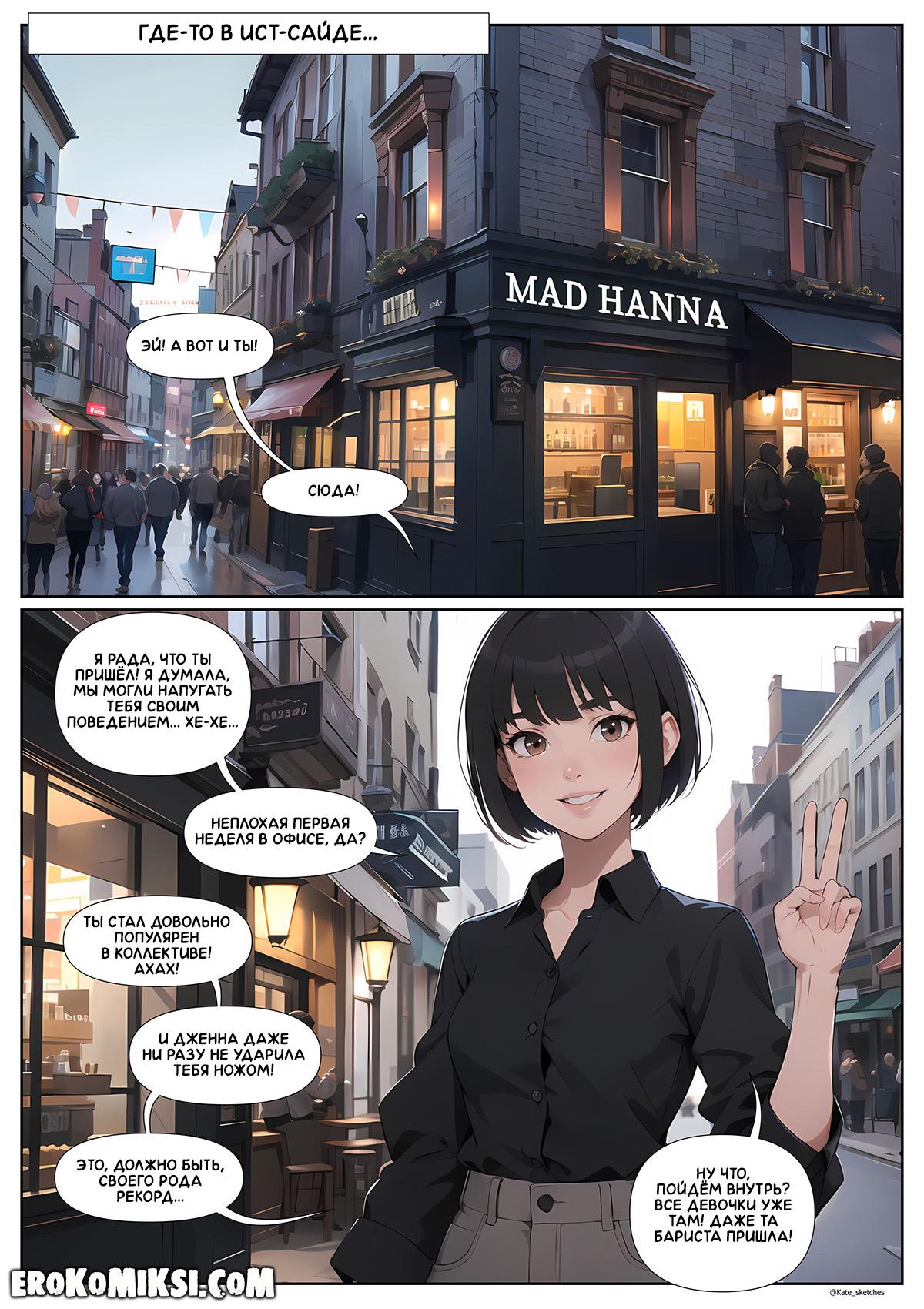 Секс комикс Офис. Эпизод 6. Вечеринка. Все девчонки с офиса отправились в бар, куда пригласили и баристу Таню, которая тоже положила глаз на новенького айтишника. Когда все уже изрядно напились и собирались по домам, Таня пригласила айтишника к себе, чтобы пропустить ещё по паре стаканчиков, а также, чтобы он как следует оттрахал её тугую киску своим огромным членом.
