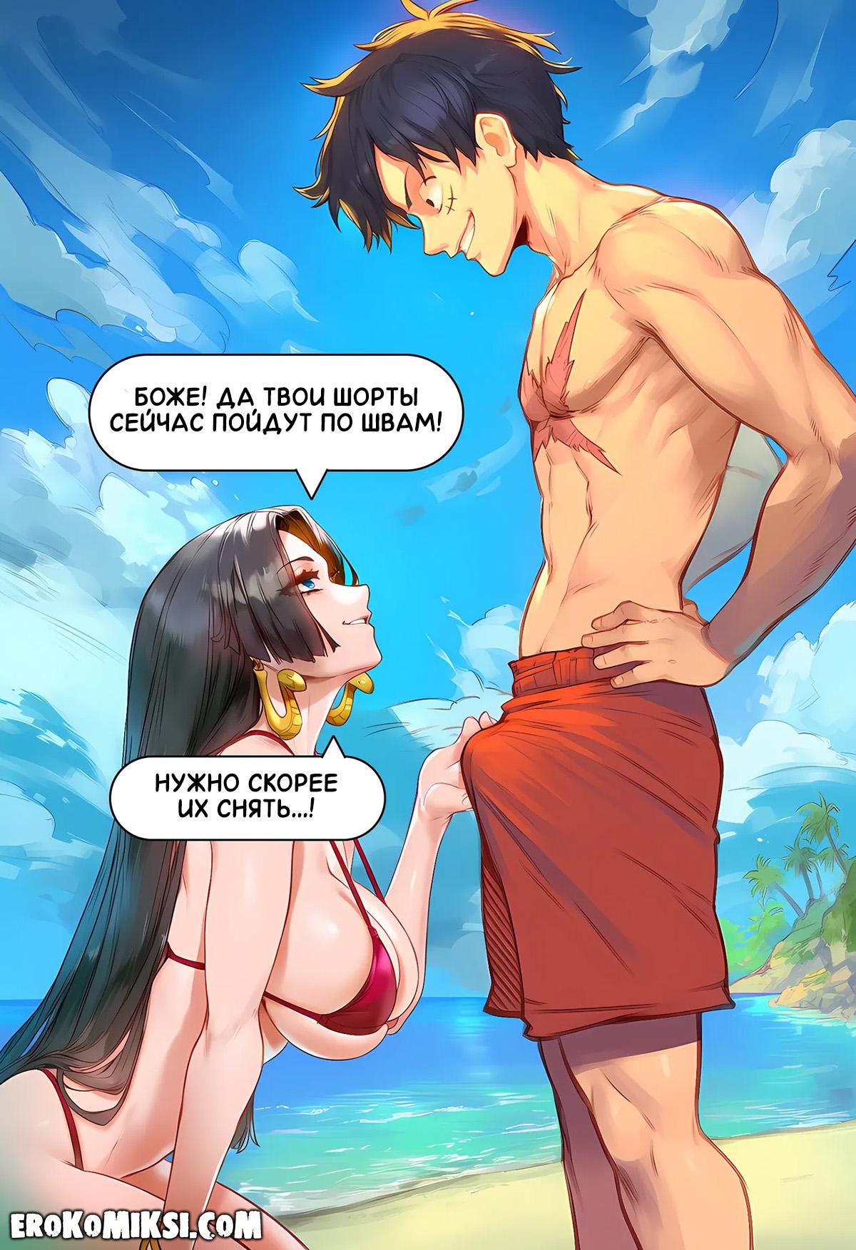 Секс комикс One Piece. Луффи и его девушки. Часть 2. Луффи встречает загорающую Боа, которая соскучилась по его твёрдому члену. Боа без раздумий срывает с Луффи шорты и начинает надрачивать его член своими большими сиськами, а затем даёт ему хорошенько оттрахать свою тугую киску…
