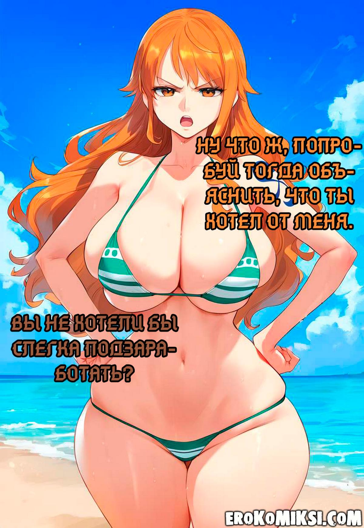 Секс комикс One Piece. Лёгкие деньги для Нами. Когда Нами отдыхала на пляже, то к ней подошёл неизвестный мужчина. Он предложил ей легкий способ подзаработать, на что наша героиня конечно же согласилась…