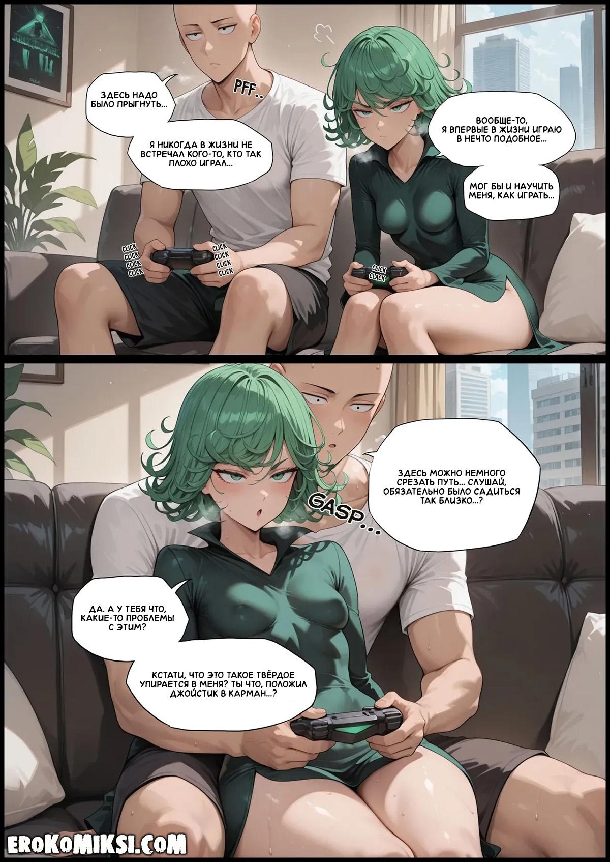 Секс комикс One Punch Man. Время игр. Сайтама начал учить Тацумаки играть в компьютерные игры, и она очень близко к нему прижалась, от чего у него встал член. Заметив это, Тацумаки лишь обрадовалась, и позволила Сайтами поиграть с ней в другие игры…
