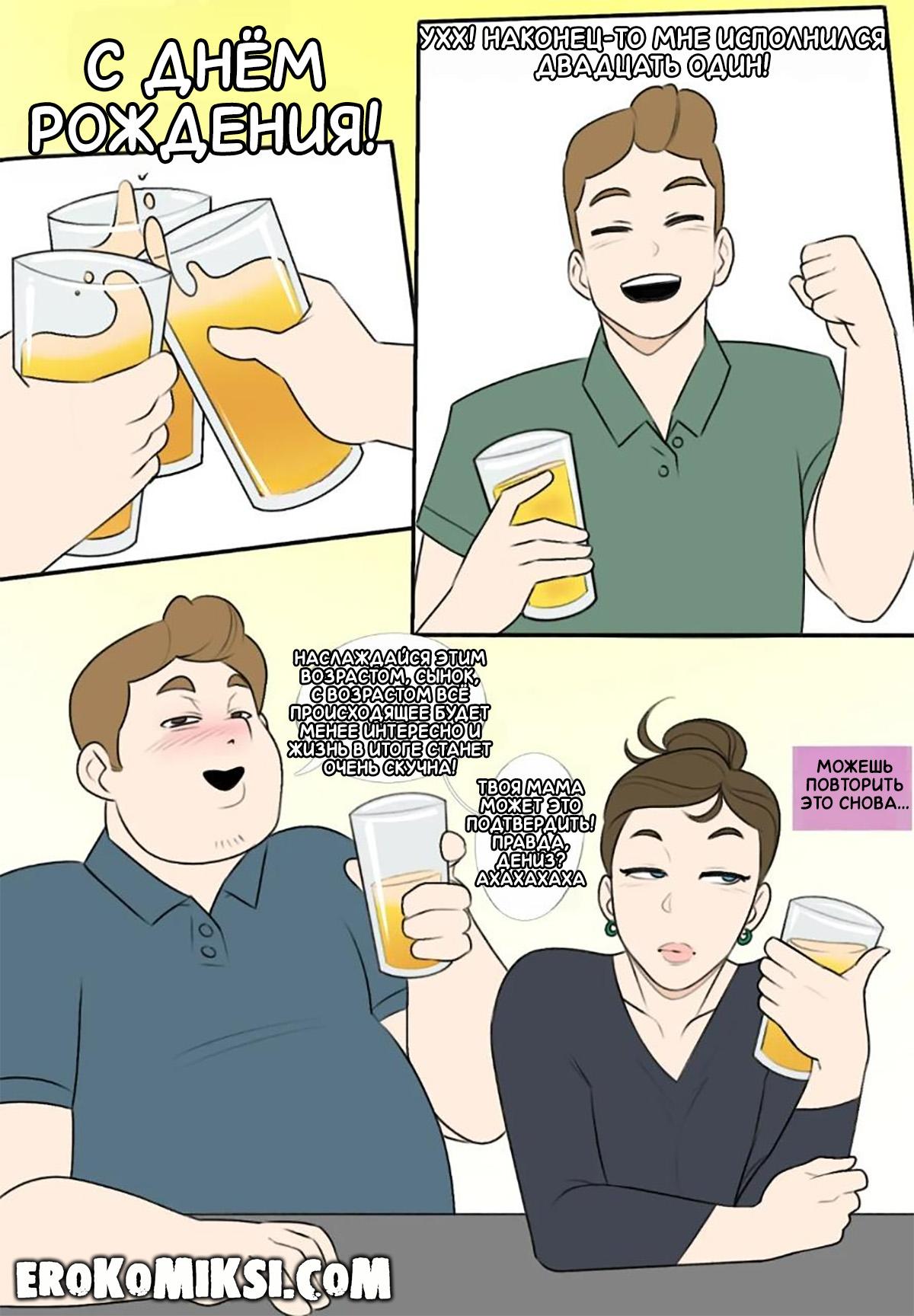 Секс комикс Особенный подарок от мамы. Когда сыну исполнился 21 год, Дениз решила преподнести ему особенный подарок. Она затащила сыночка в свою спальню, где моментально стащила с него штаны, чтобы как следует отсосать его огромный член…
