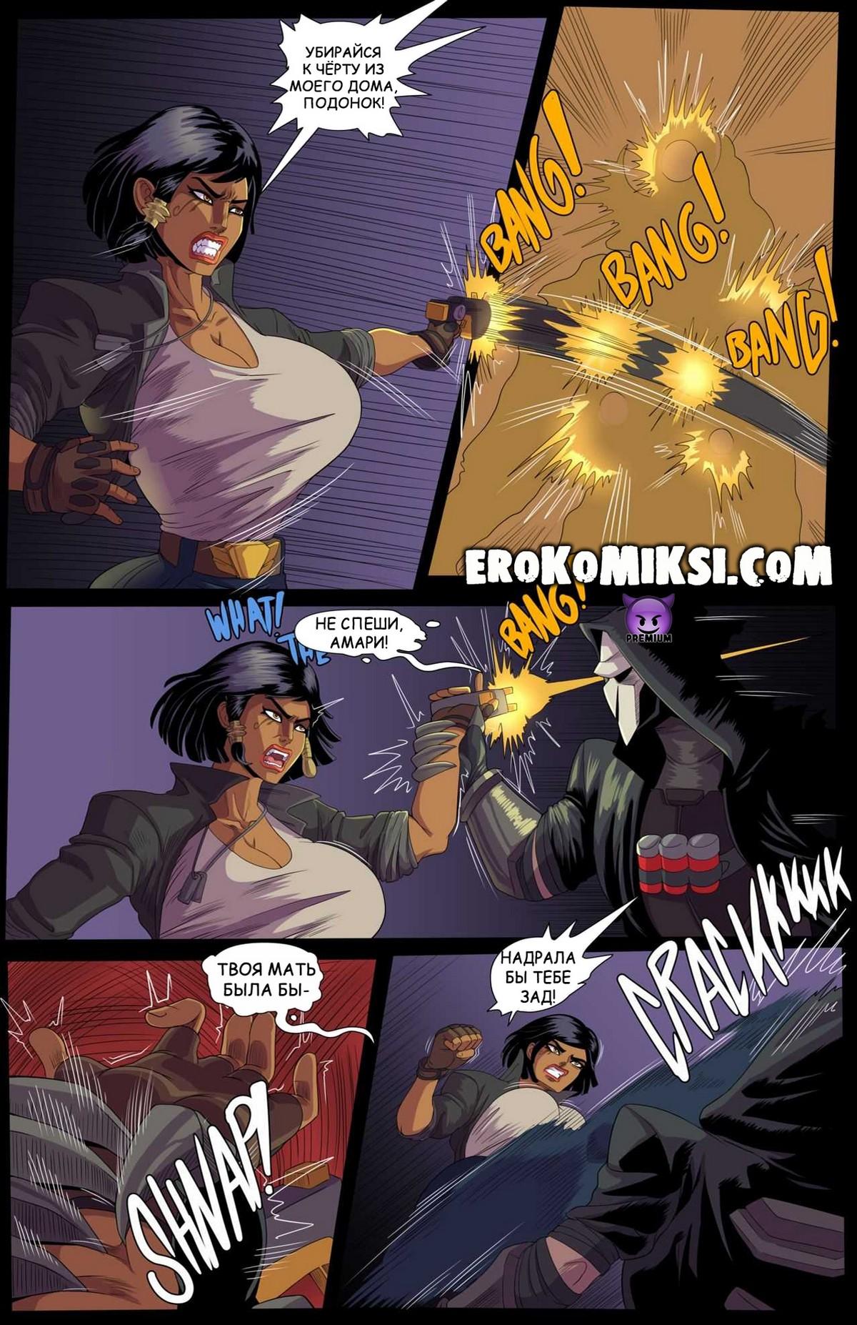 Секс комикс Овервотч. Цель — Фарра. Жнец вламывается домой к горячей Фарре, чтобы трахнуть её тугую киску и ротик, прежде чем его команда убьёт её. Очень жёстко траха её, она не может даже сопротивляться…
