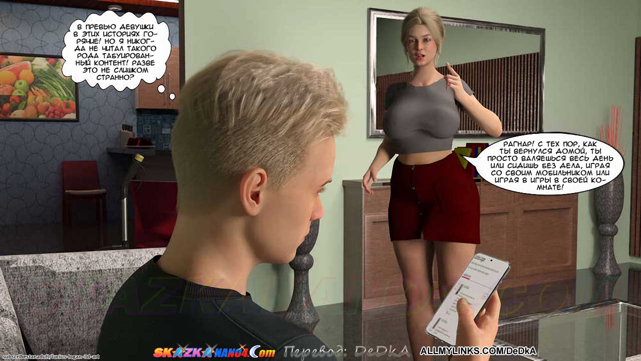 Секс комикс Плохая мама. Часть 1. Рагнар учится в колледже, он приехал на каникулах погостить у родителей. Все свое время на каникулах он посвящает видео играм и чтению комиксов о проделках горячих милф. Но в какой-то момент он замечает, что и в реальной жизни есть немало интересного…